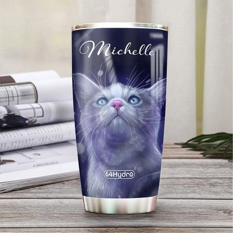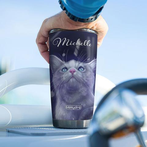 3D White Cat Personalized Stainless Steel Tumbler, Personalized Tumblers, Tumbler Cups, Custom Tumblers