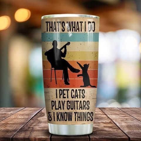 A Man With Guitar And His Cat Personalized Kd2 Stainless Steel Tumbler, Personalized Tumblers, Tumbler Cups, Custom Tumblers