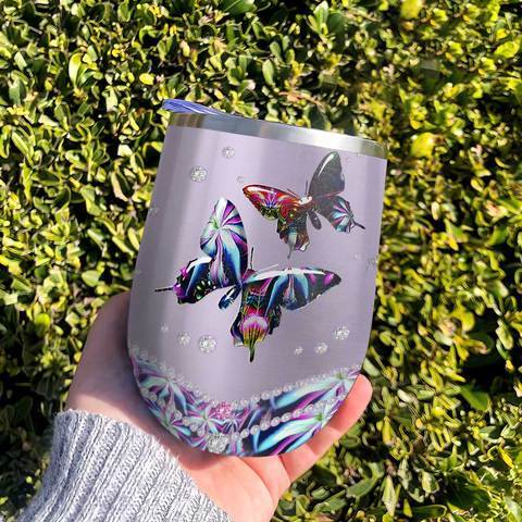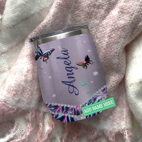 Abstract Art Metal Butterfly Personalized Wine Tumbler, Personalized Tumblers, Tumbler Cups, Custom Tumblers