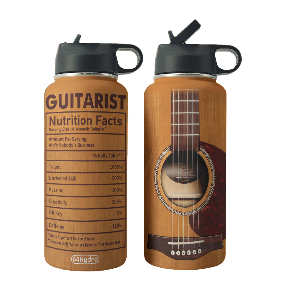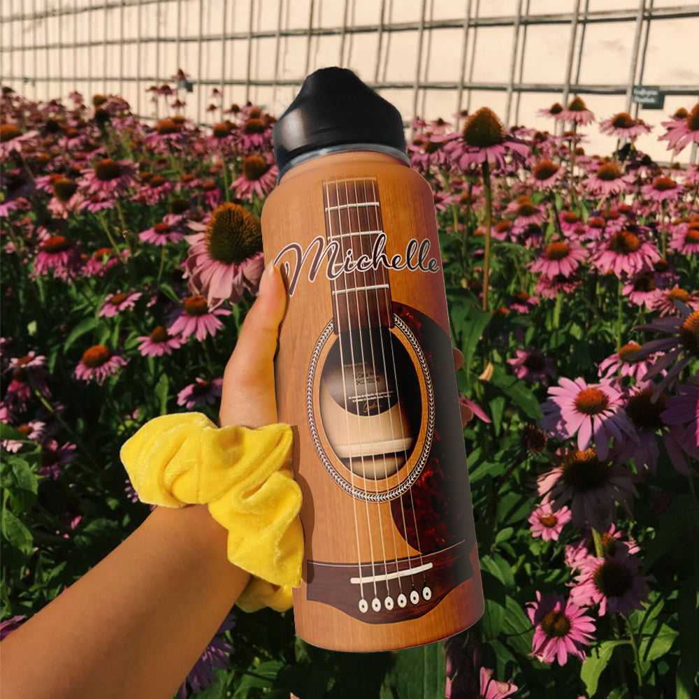 Acoustic Guitar Fact Personalized Hhr2110003 Stainless Steel Bottle With Straw Lid