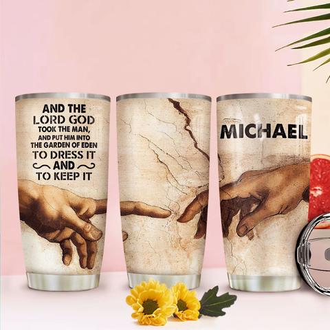 Adam And God Hand Personalized Stainless Steel Tumbler, Personalized Tumblers, Tumbler Cups, Custom Tumblers