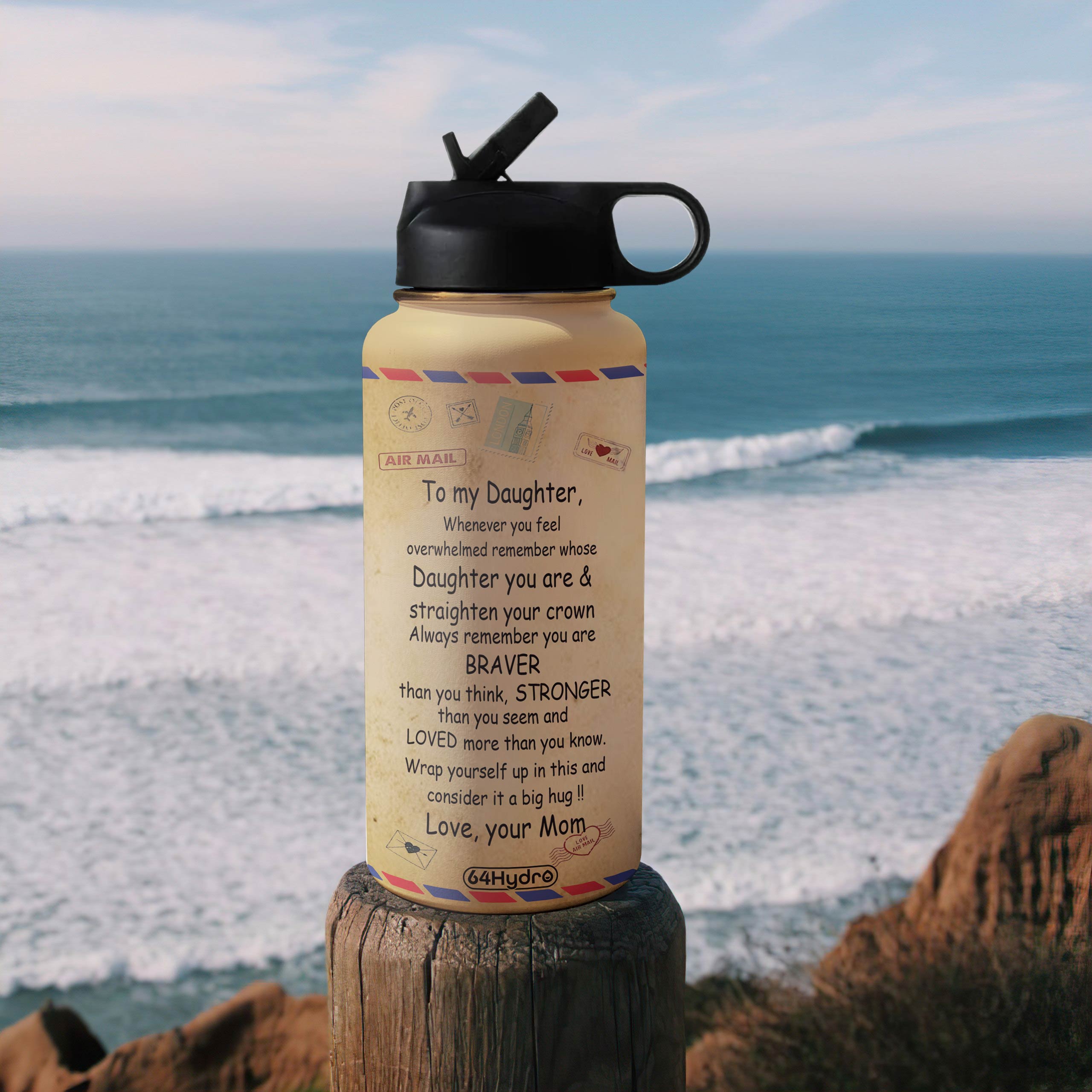 Air Mail To My Daughter Personalized Hhs2810007 Stainless Steel Bottle With Straw Lid