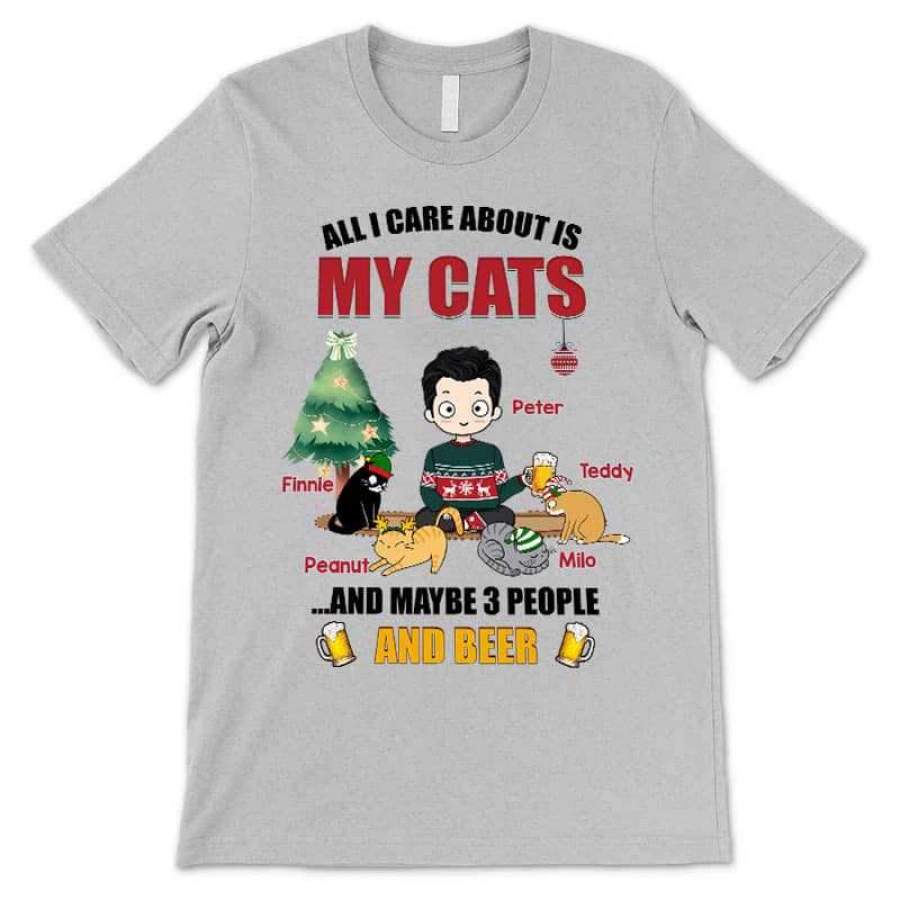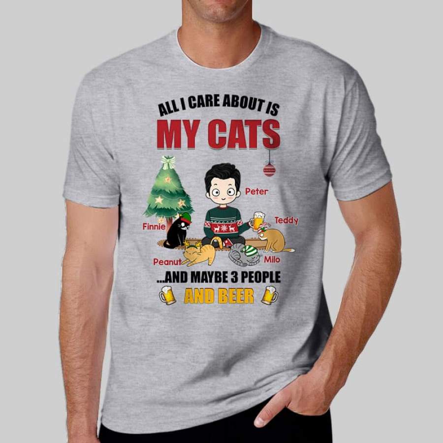 All I Care Cat And Beer Chibi Boy Christmas Personalized Shirt