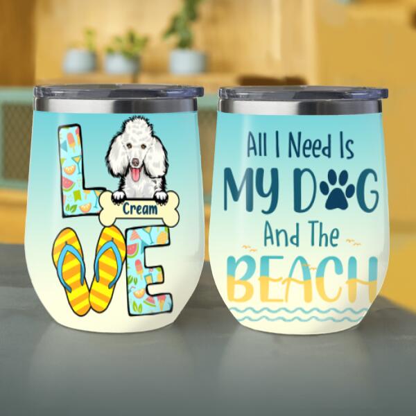 All I Need Is My Dog And The Beach Awesome Summer Trip Gift Dog Lovers Custom Name Personalized Wine Tumbler