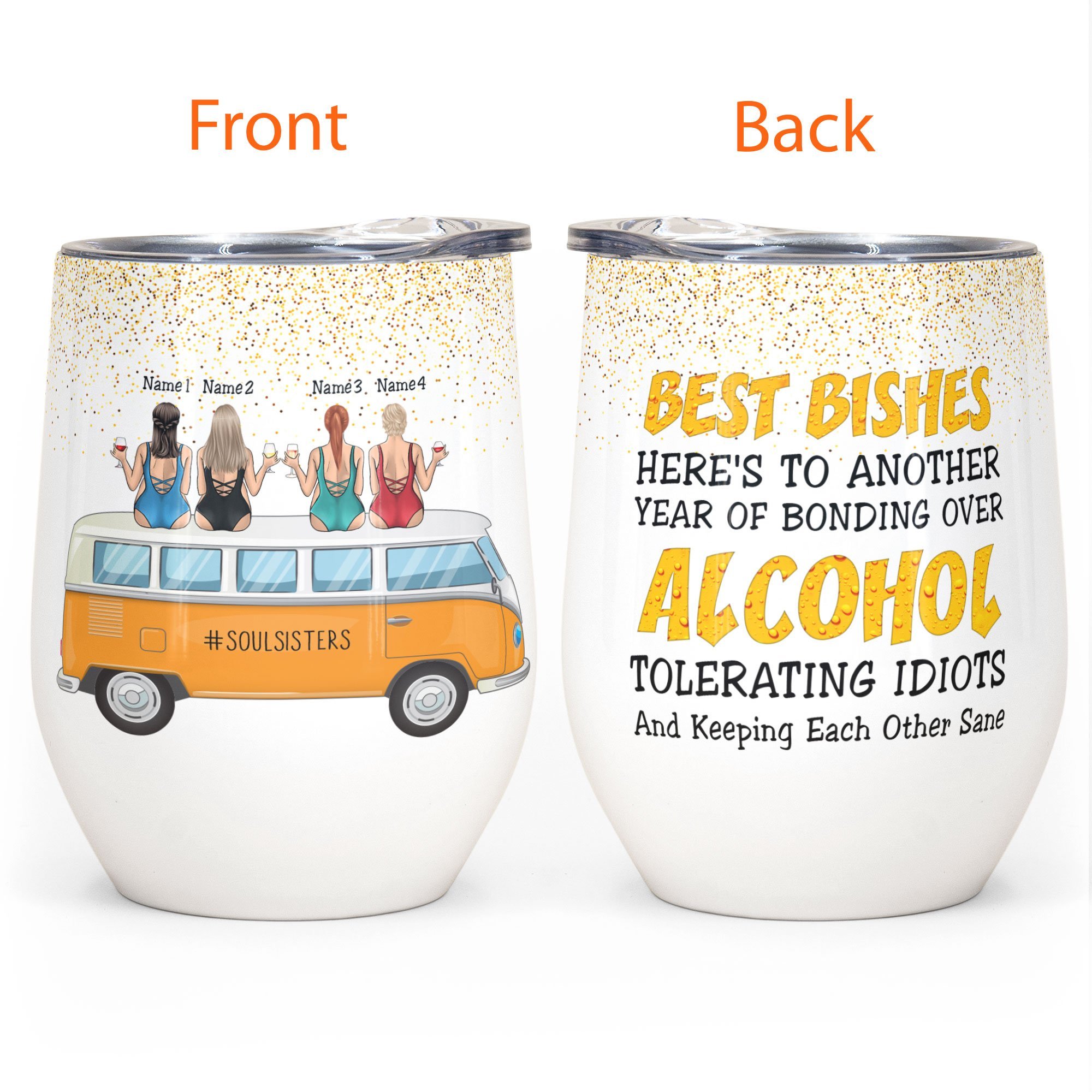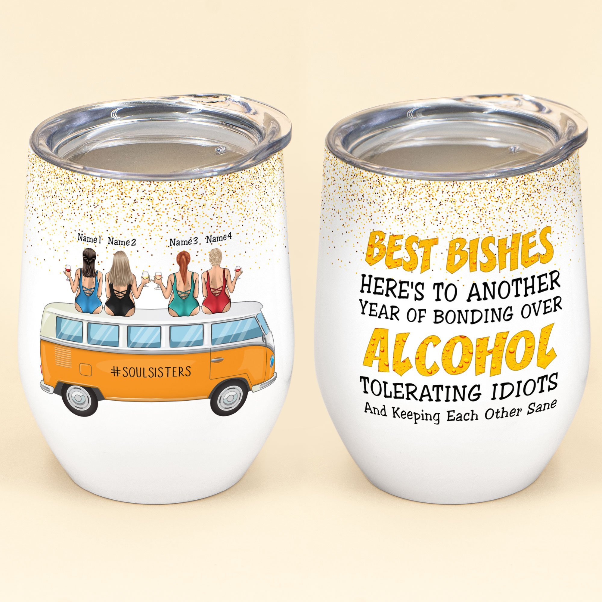 Another Year Of Bonding Over Alcohol – Personalized Wine Tumbler – Gift For Friends – Beach Friends Sitting