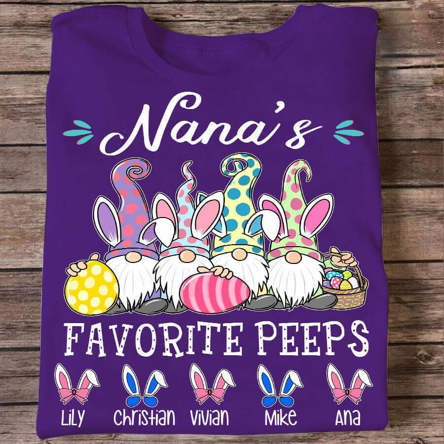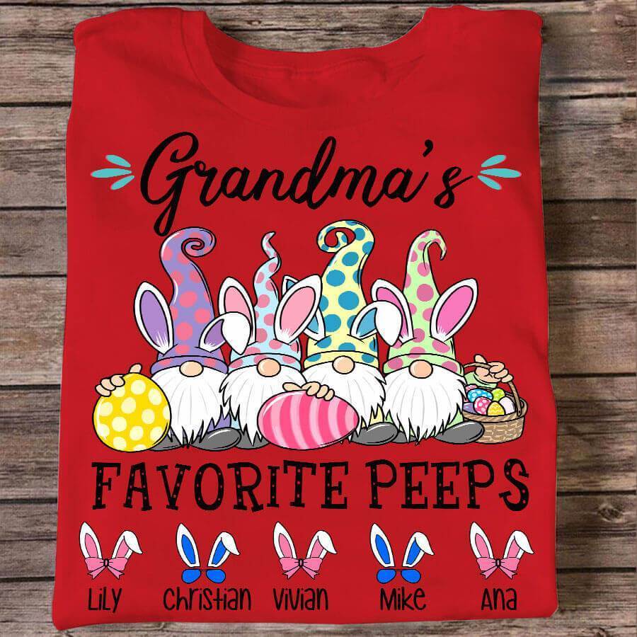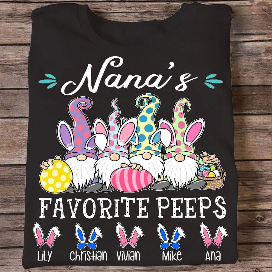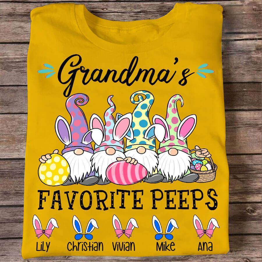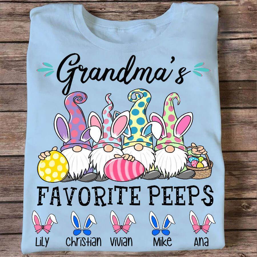 Apayprint -Grandma’s Favorite Peeps Gnome Easter, Grandkid’s Name | Personalized T-Shirt, Hoodie, S – 5XL, White Grey Pink Blue Black