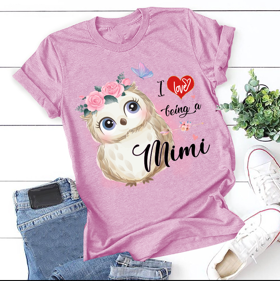 Apayprint – I Love Being A Mimi – Owl | Personalized T-Shirt