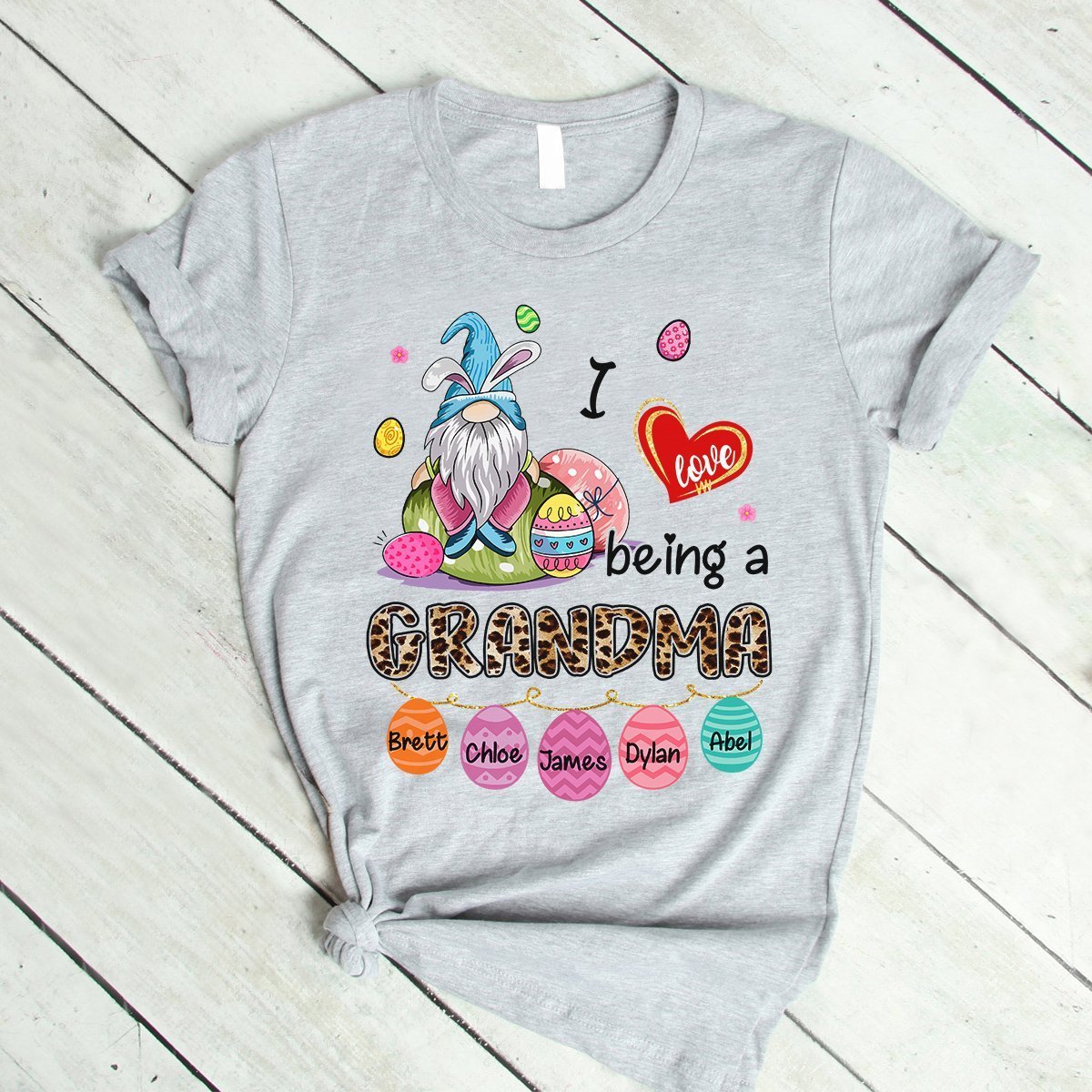 Apayprint – I Love Being Grandma Easter, Nana, Gigi, Mimi, Grandkid’s Name | Personalized T-Shirt,Hoodie, S – 5XL, White Grey Pink Blue Black