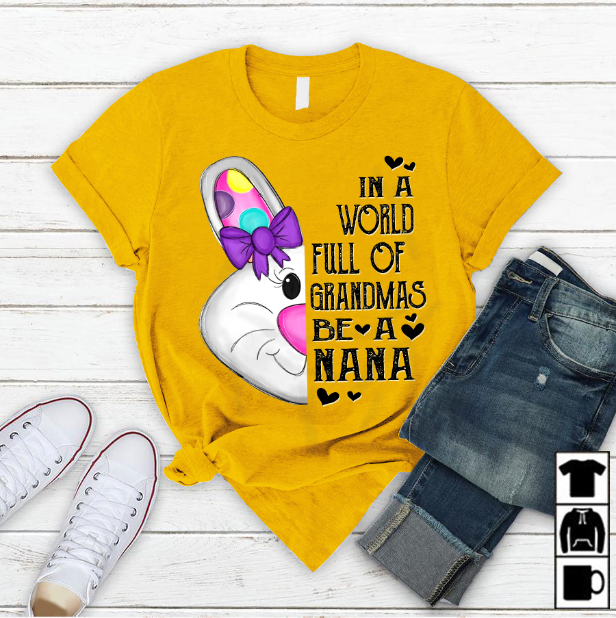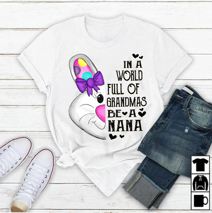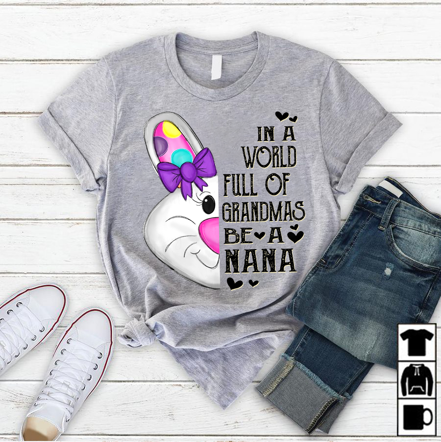 Apayprint -In A World Full Of Grandmas Be A Nana, Gammie, Grandma,Mimi,Gigi-Easter, Grandkid’s Name | Personalized T-Shirt, S – 5XL, White Grey Pink Blue Black