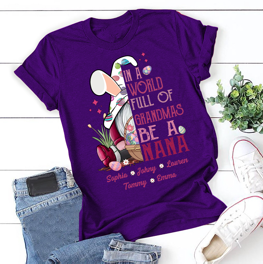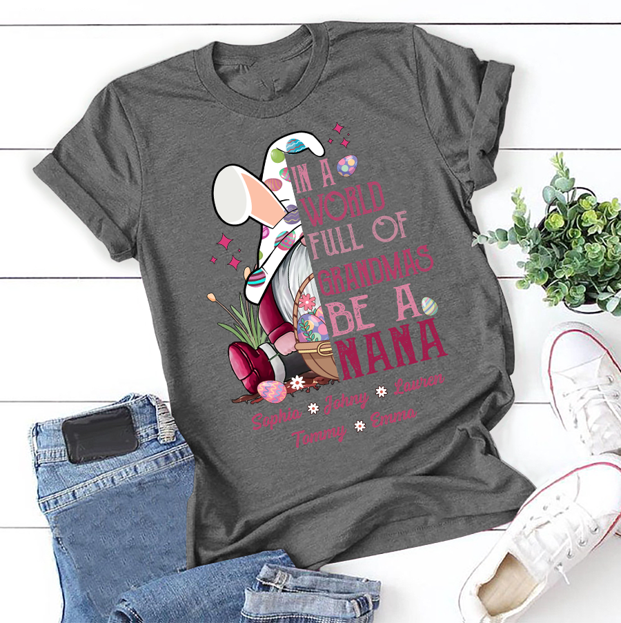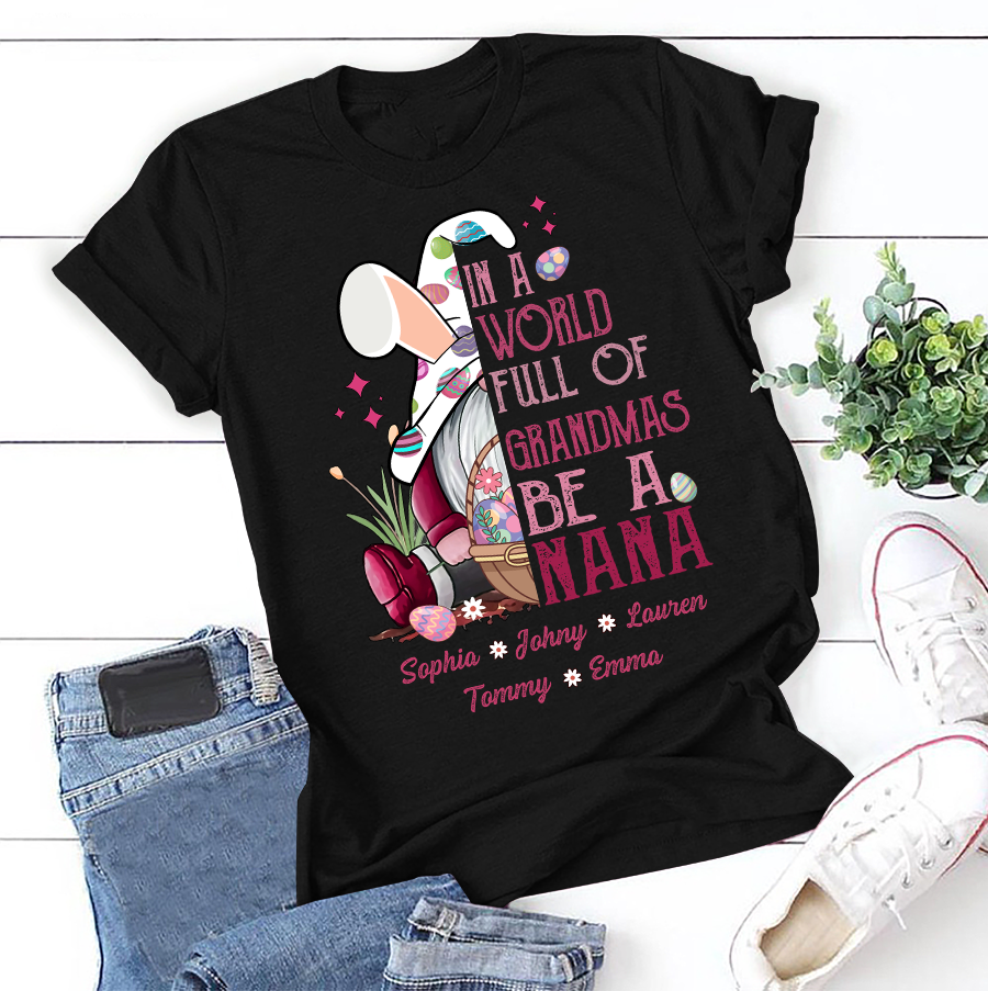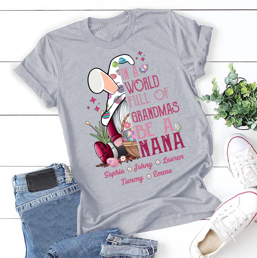 Apayprint – In A World Full Of Grandmas Be A Nana, Grandkid’s name | Personalized T-Shirt, Hoodie, S – 5XL, White Grey Pink Blue Black