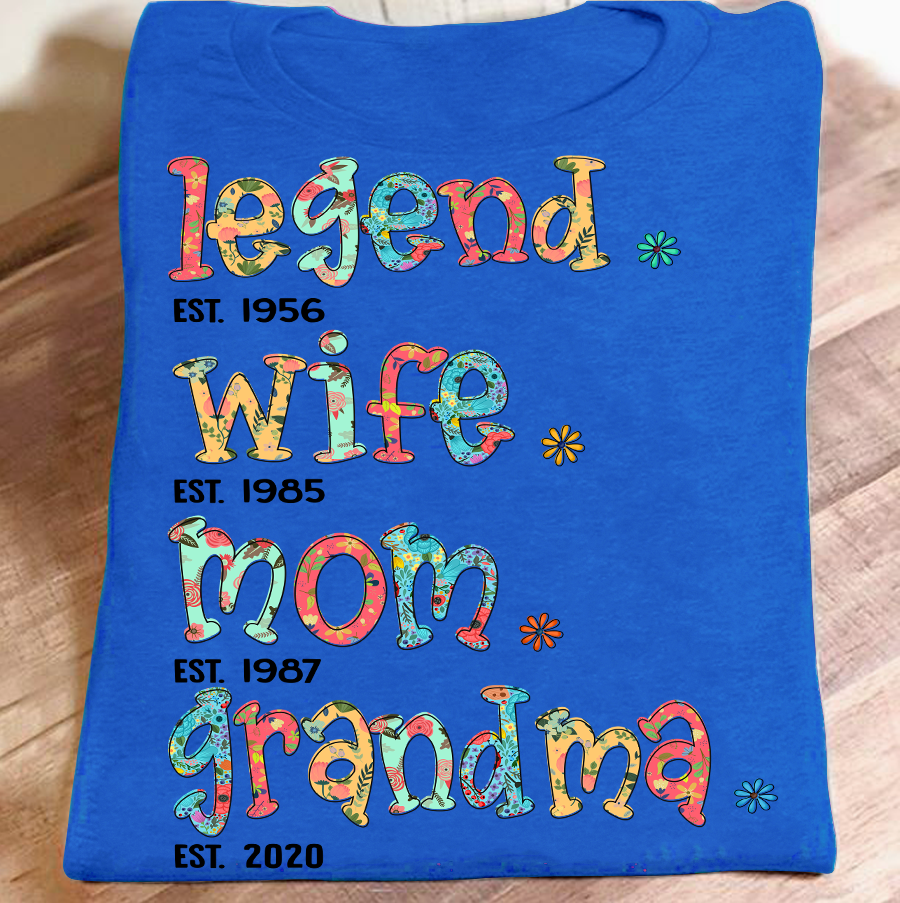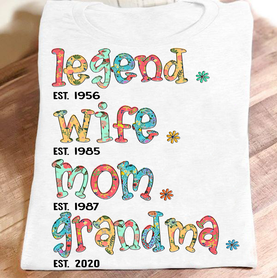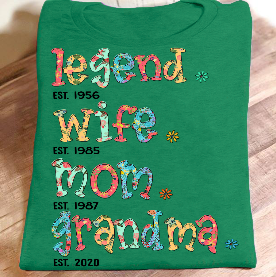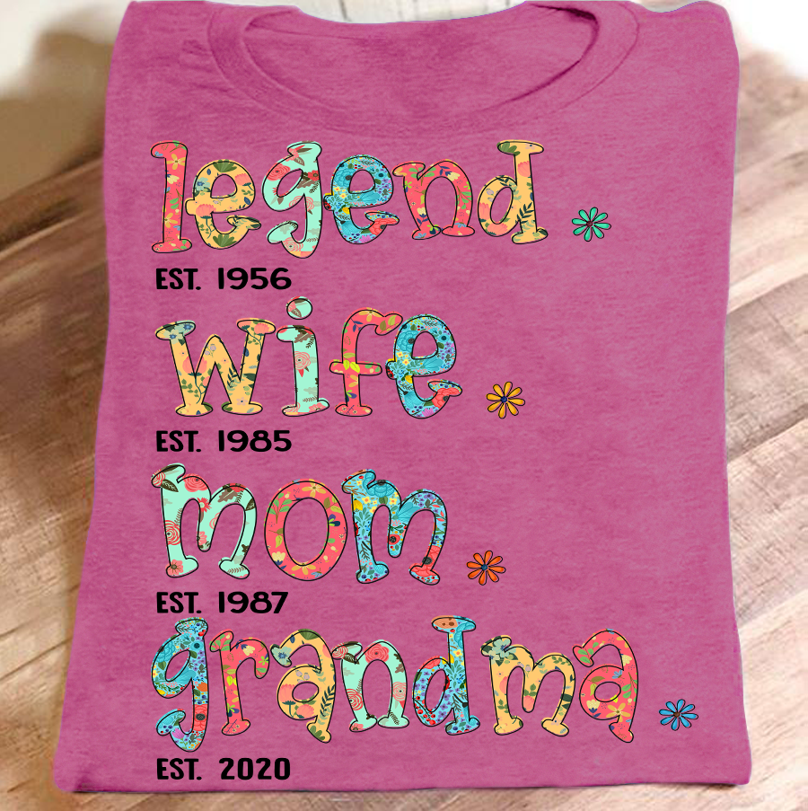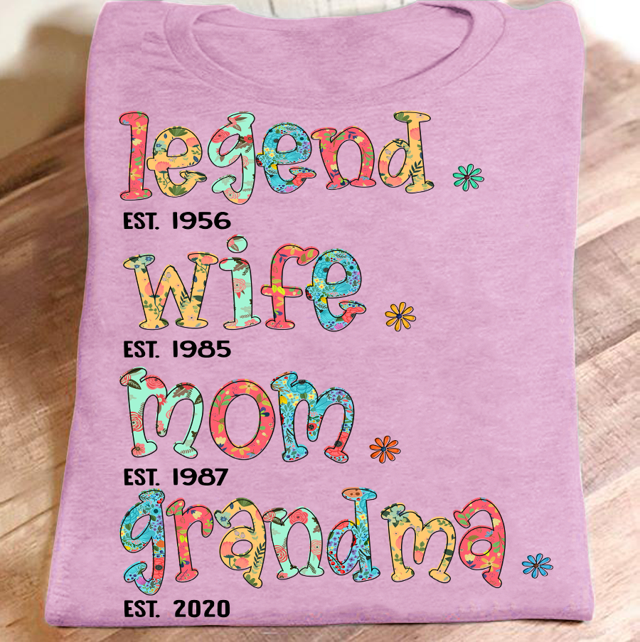 Apayprint – Legend – Wife – Mom – Grandma – Est| Personalized T-Shirt