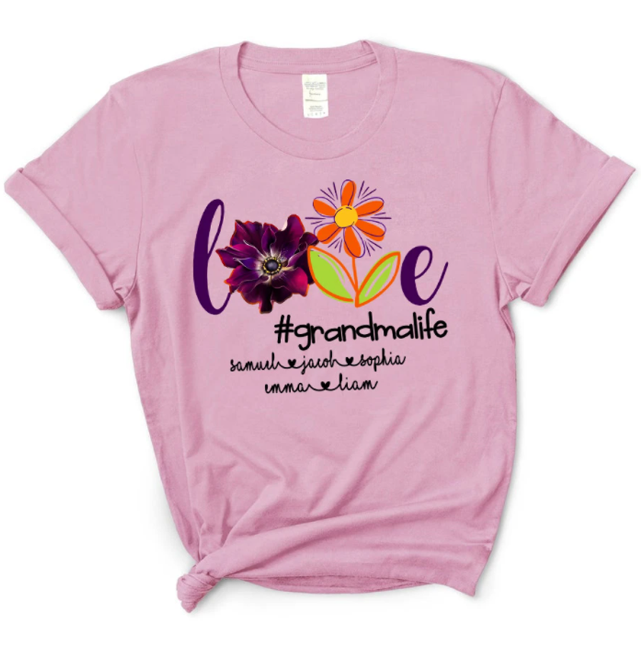 Apayprint – Love Grandma Life – Anemone, Grandkid’s Name | Personalized T-Shirt, S – 5XL, White Grey Pink Blue Black