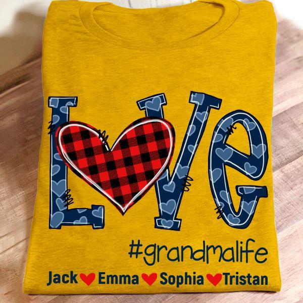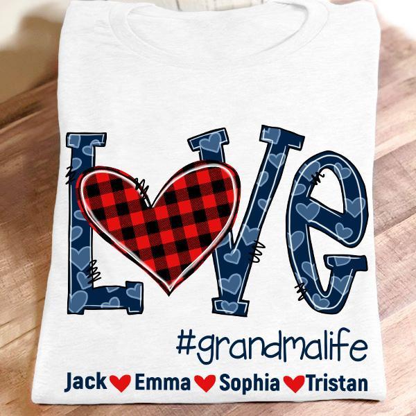 Apayprint – Love Grandma, Nana, MiMi, Gigi- Blue, Grandkid’s Name | Personalized T-Shirt, S – 5XL, White Grey Pink Blue Black