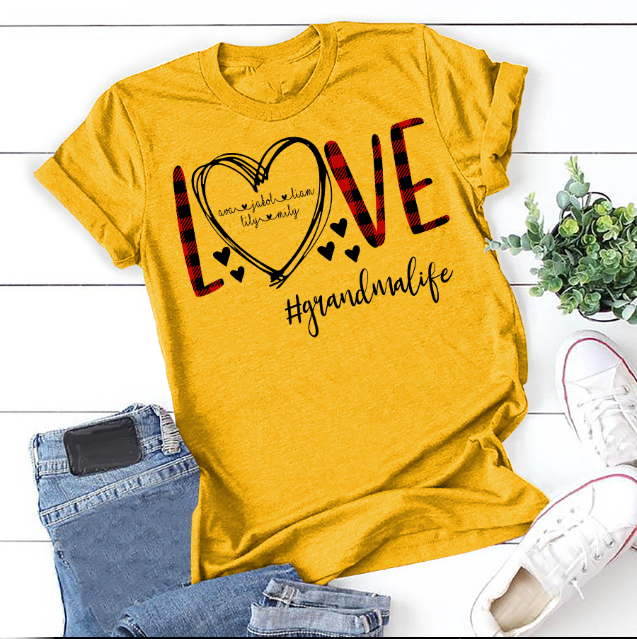 Apayprint – Love Grandma, Nana,Mimi, Gigi-Heart | Personalized T-Shirt