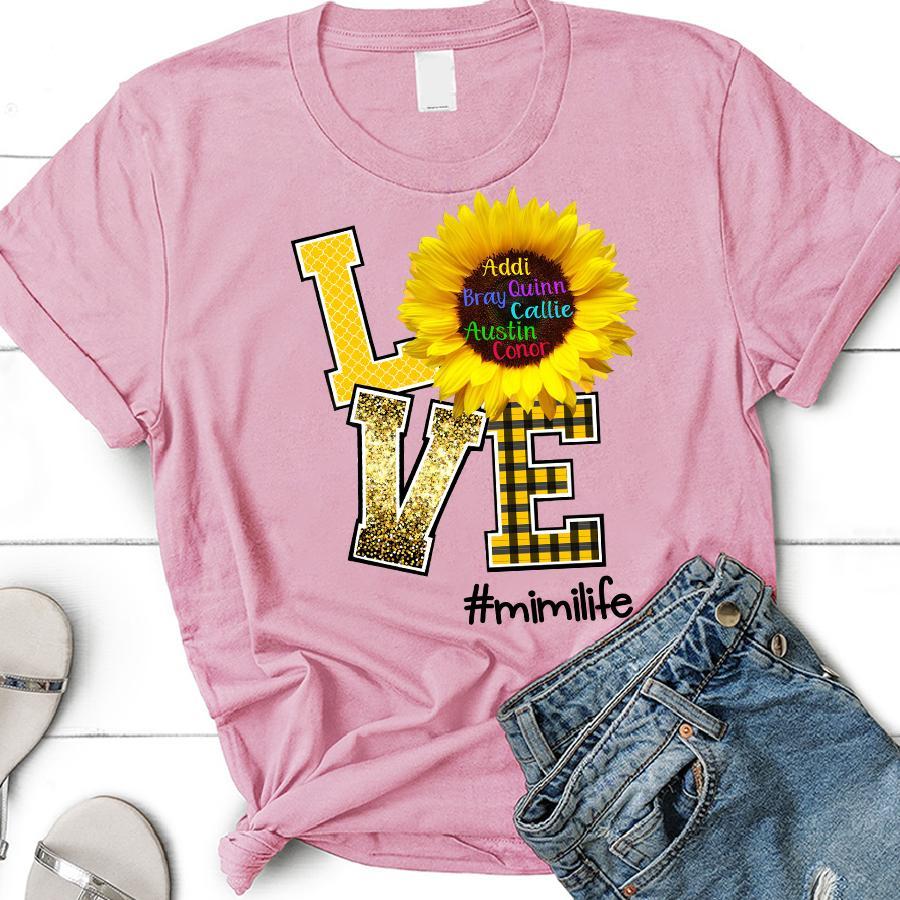 Apayprint – Love Mimi Life- Sunshine | Personalized T-Shirt, S – 5XL, White Grey Pink Blue Black