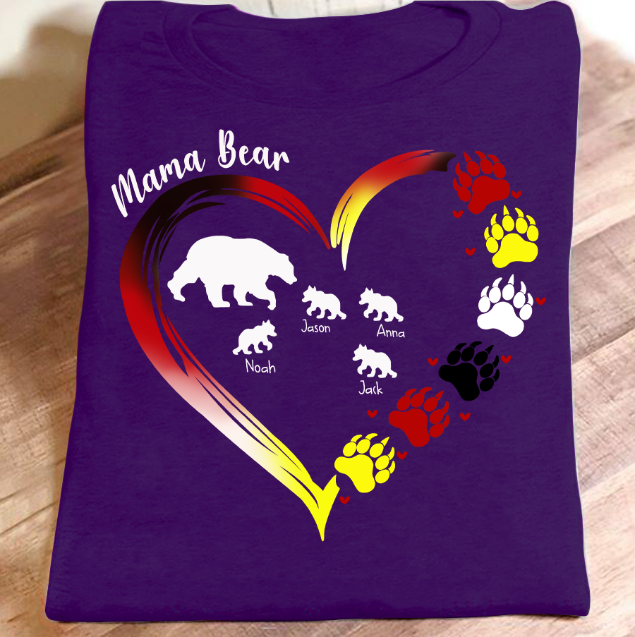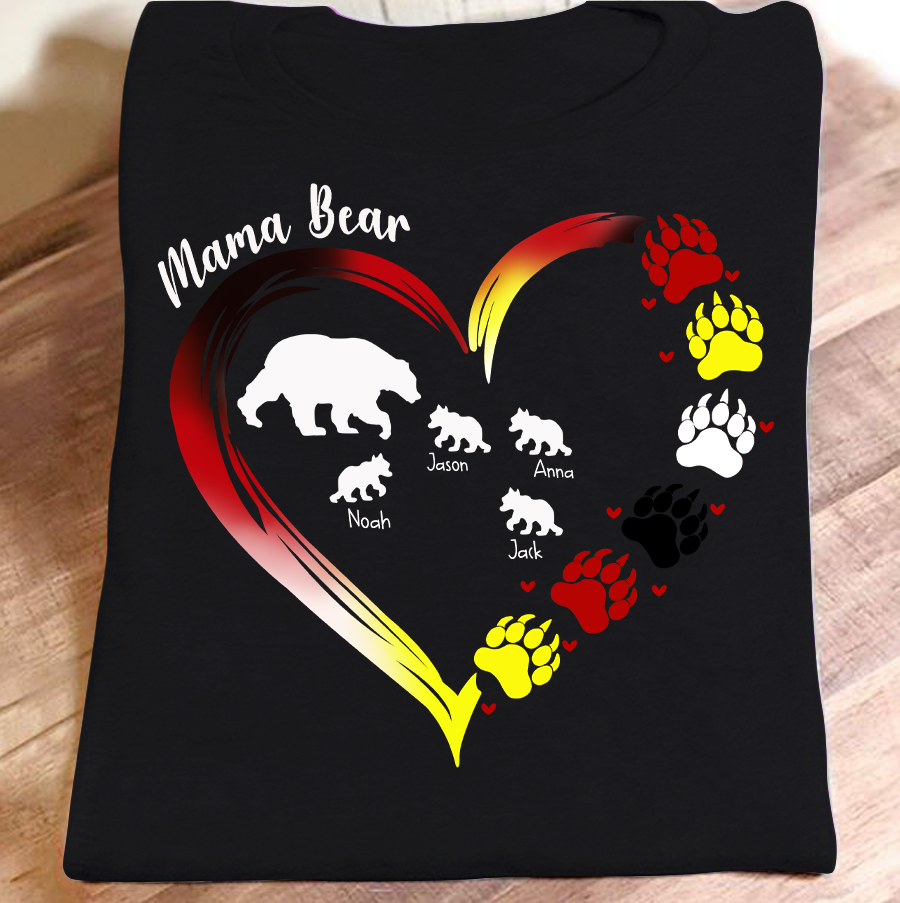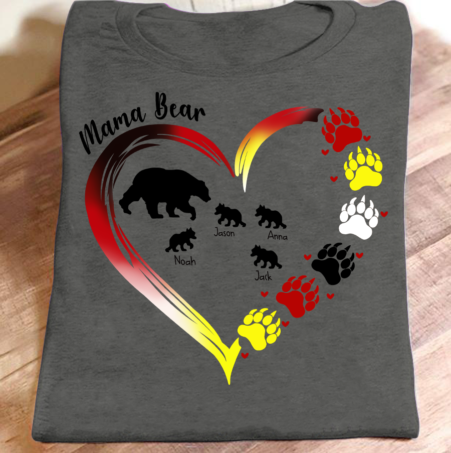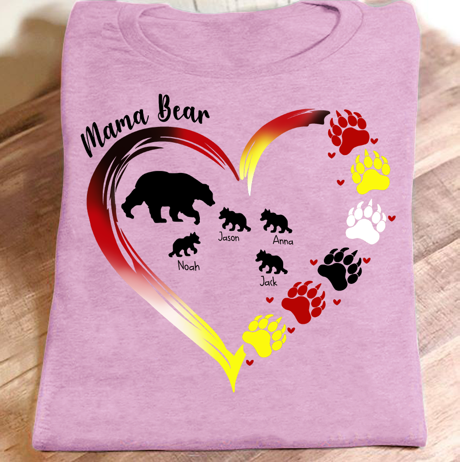 Apayprint – Mama Bear , Grandkid’s name | Personalized T-Shirt, Hoodie, S – 5XL, White Grey Pink Blue Black
