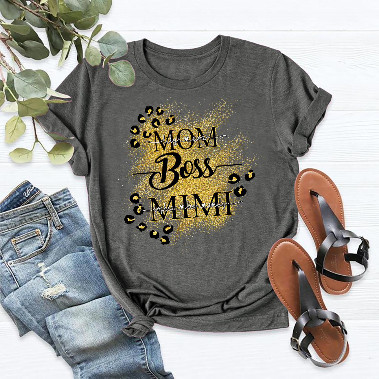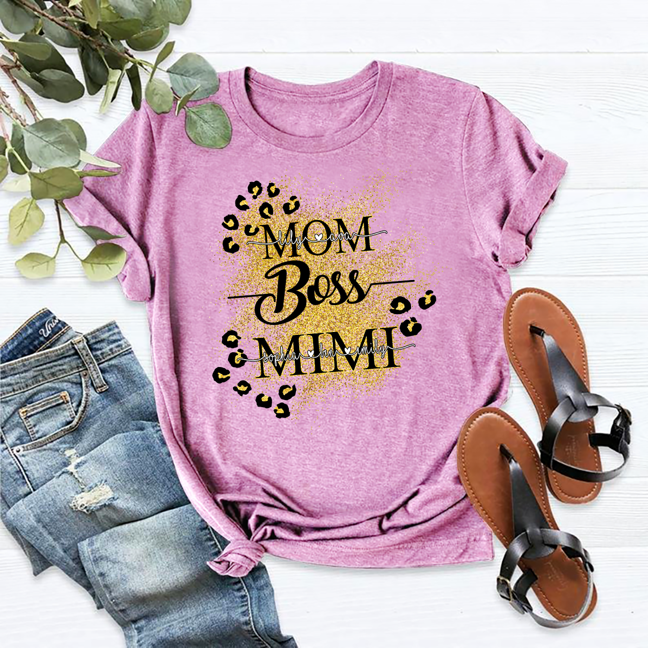 Apayprint – Mom Boss Mimi| Personalized T-Shirt, S – 5XL, White Grey Pink Blue Black