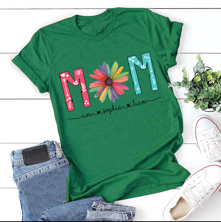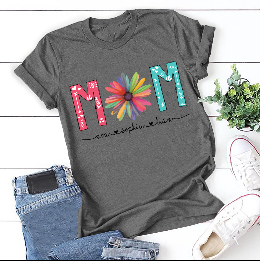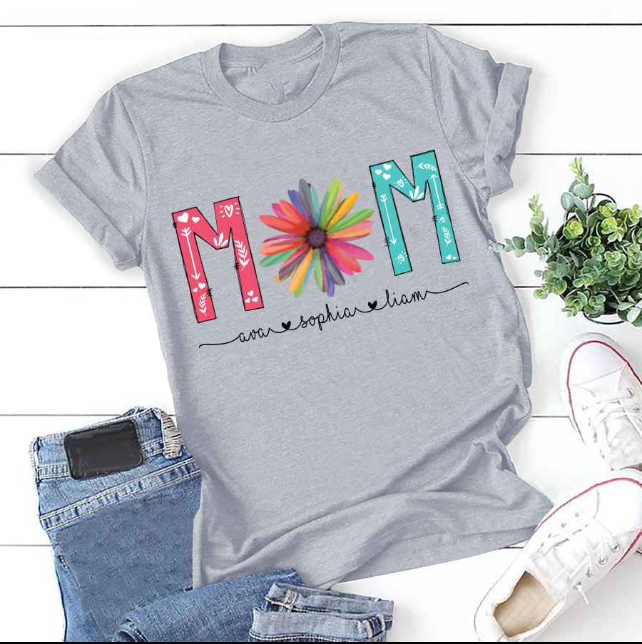 Apayprint – Mom – Flower | Personalized T-Shirt, S – 5XL, White Grey Pink Blue Black