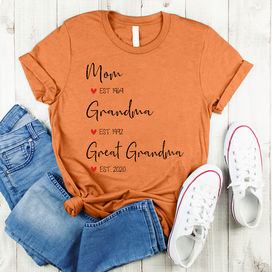 Apayprint – Mom, Grandma, Great Grandma Est | Personalized T-Shirt