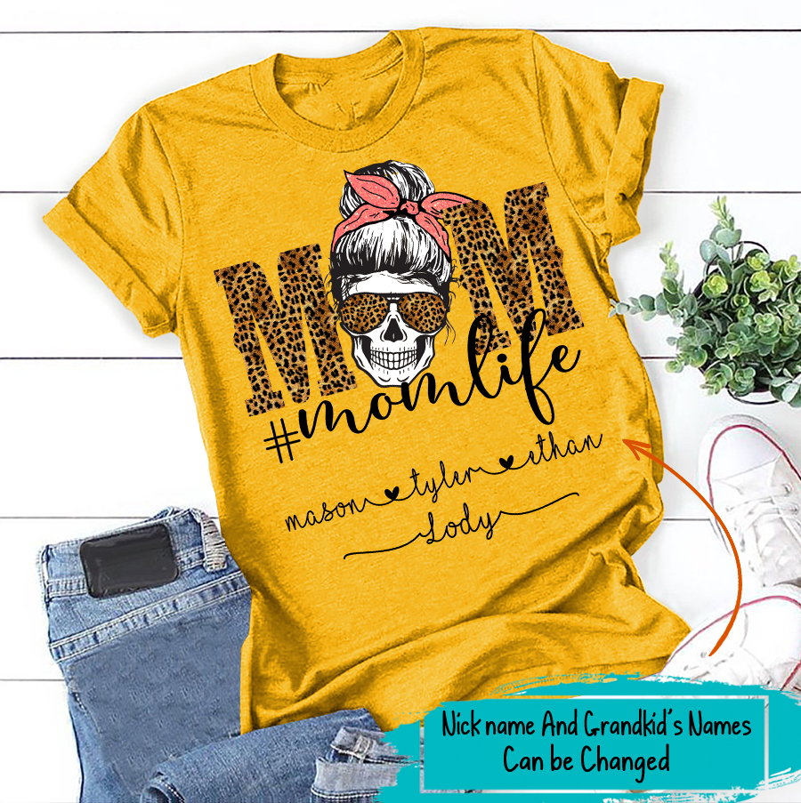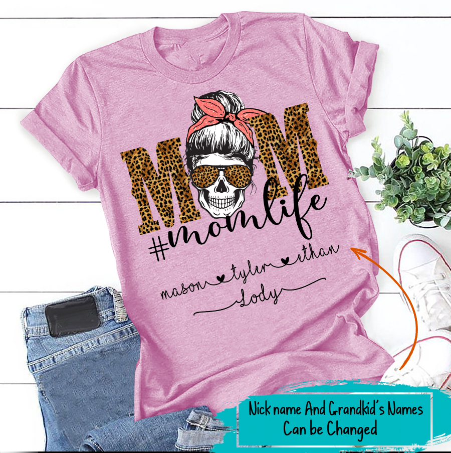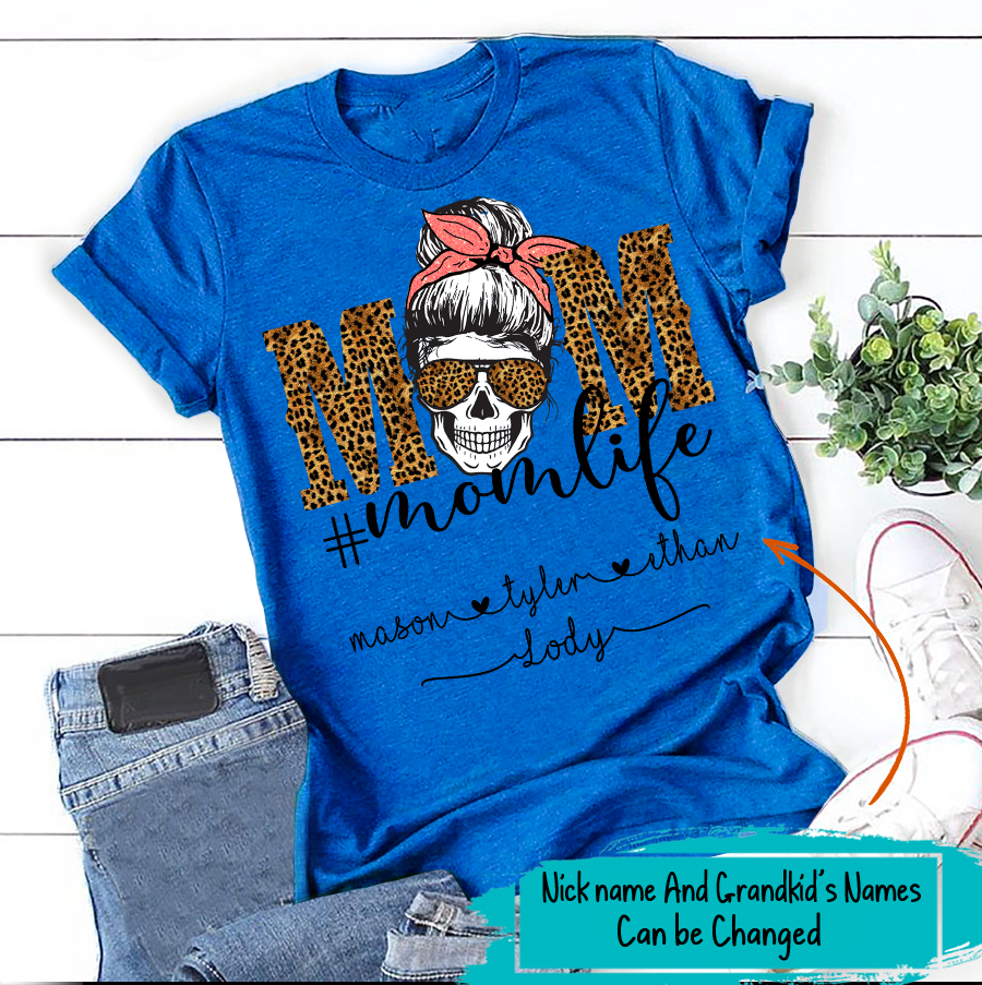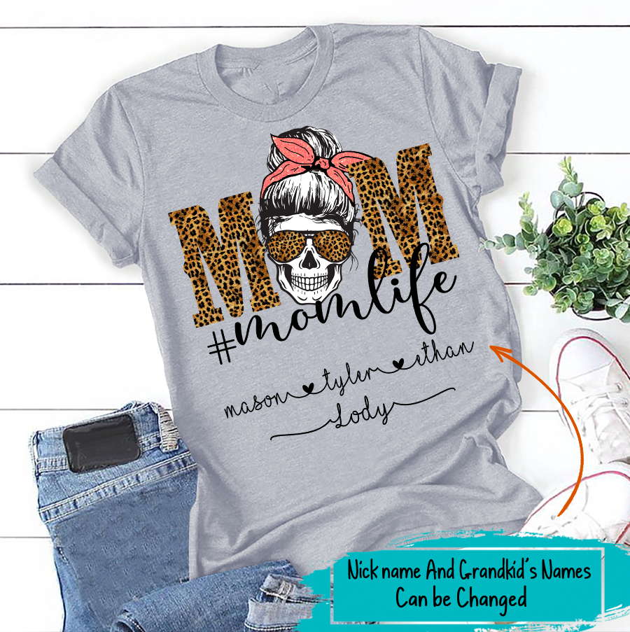 Apayprint – Mom Life – Skull | Personalized T-Shirt, S – 5XL, White Grey Pink Blue Black