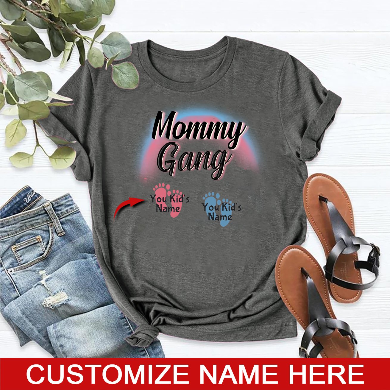 Apayprint – Mommy Gang | Personalized T-Shirt, S – 5XL, White Grey Pink Blue Black