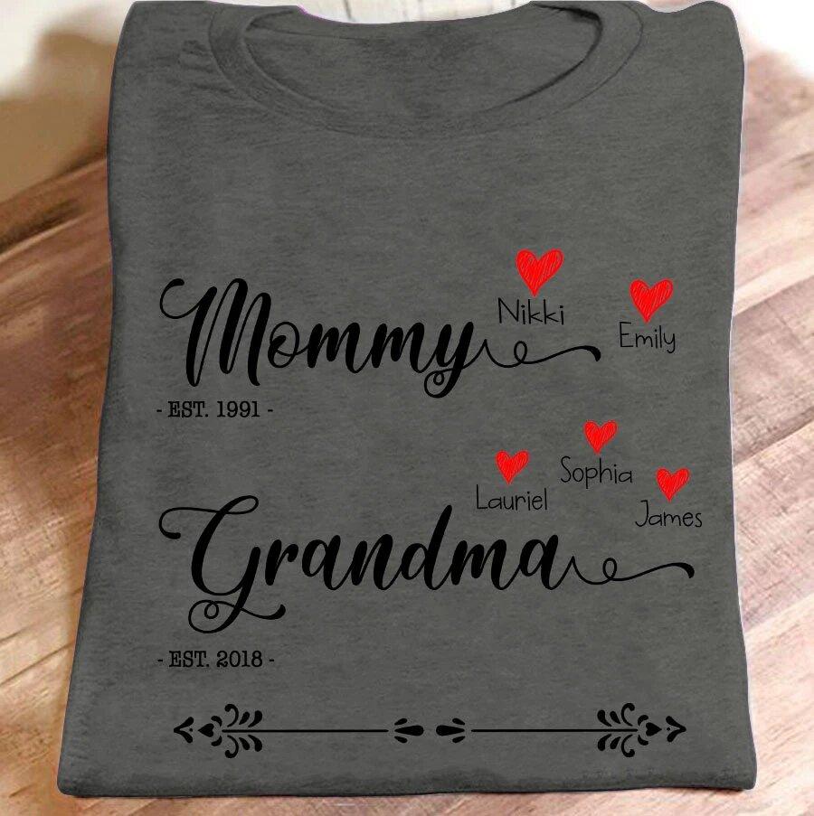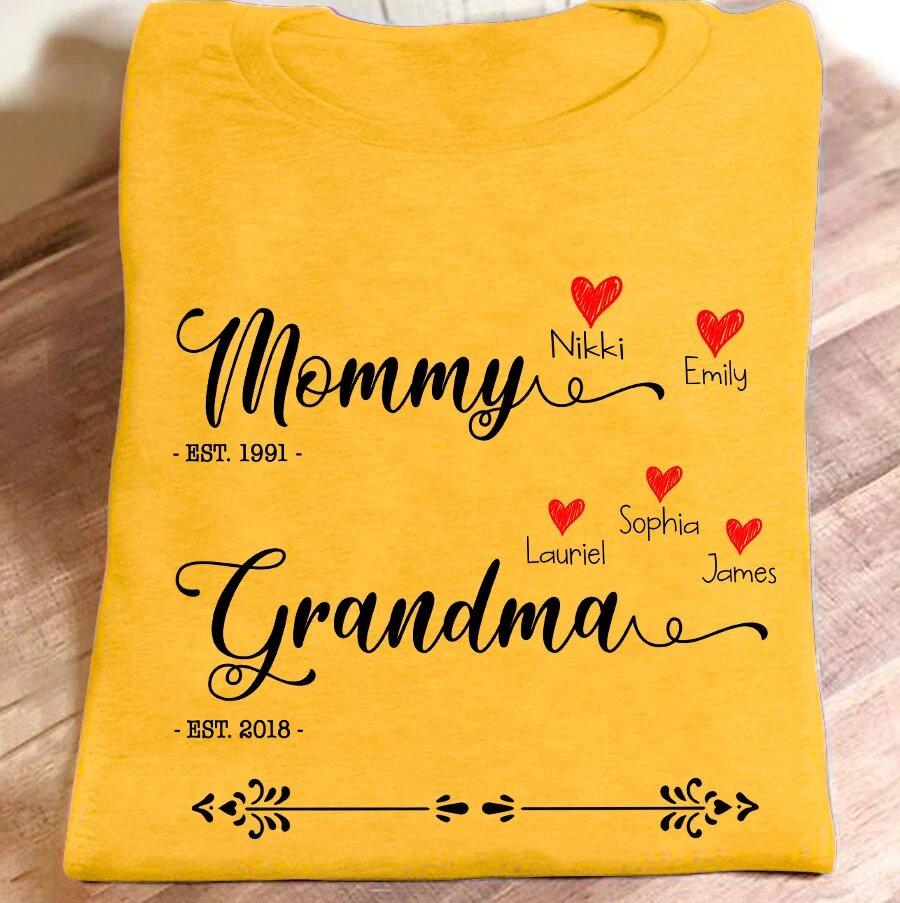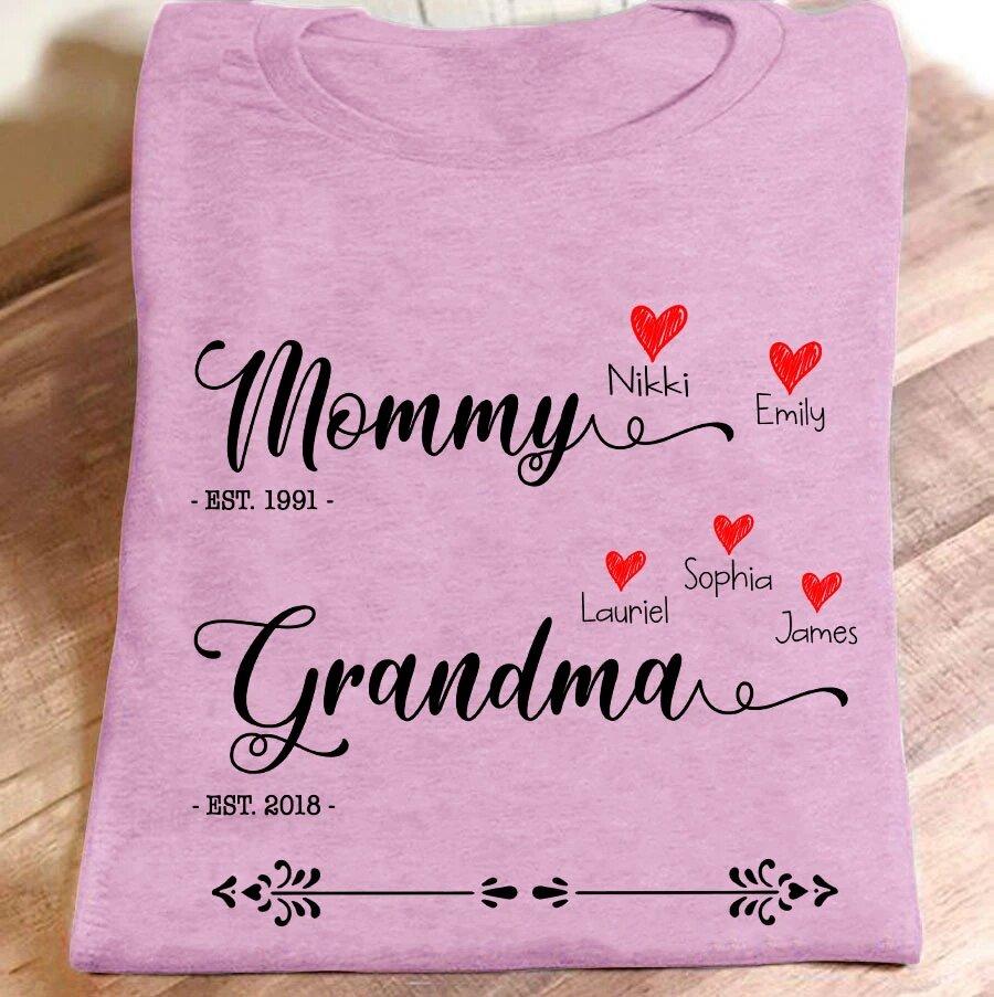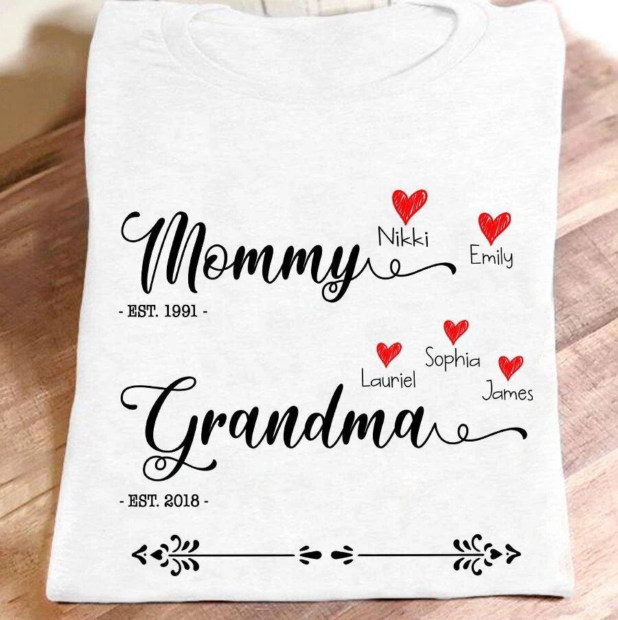 Apayprint – Mommy Grandma – Est | Personalized T-Shirt, S – 5XL, White Grey Pink Blue Black