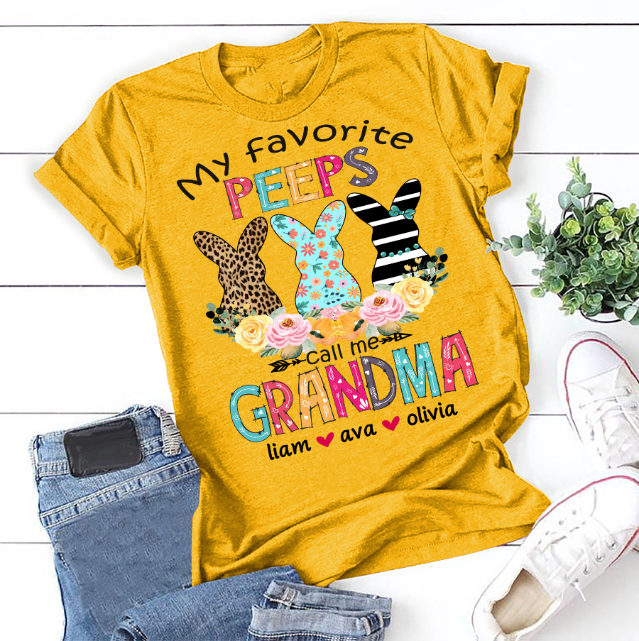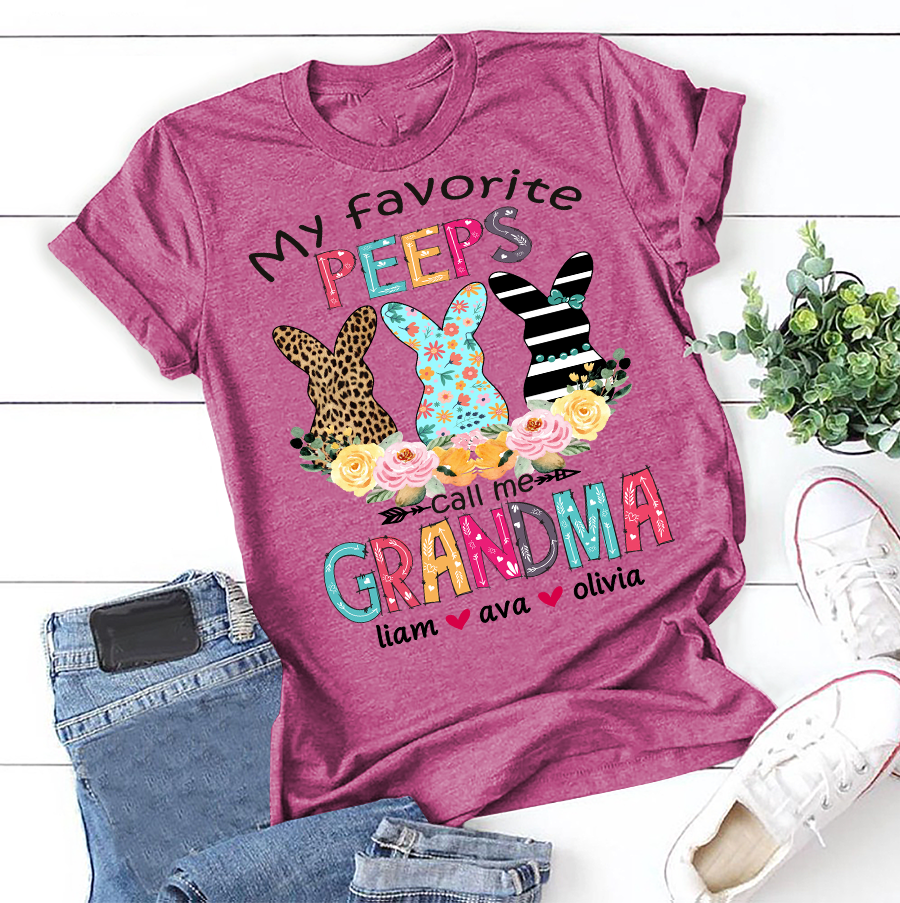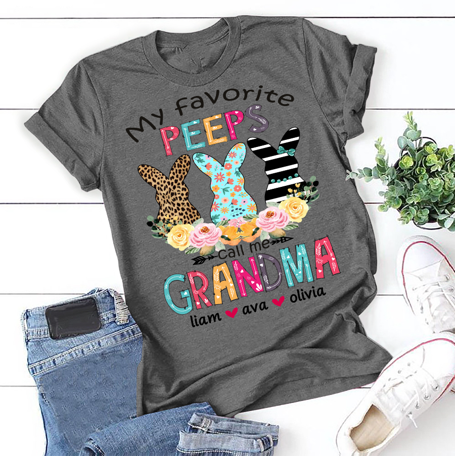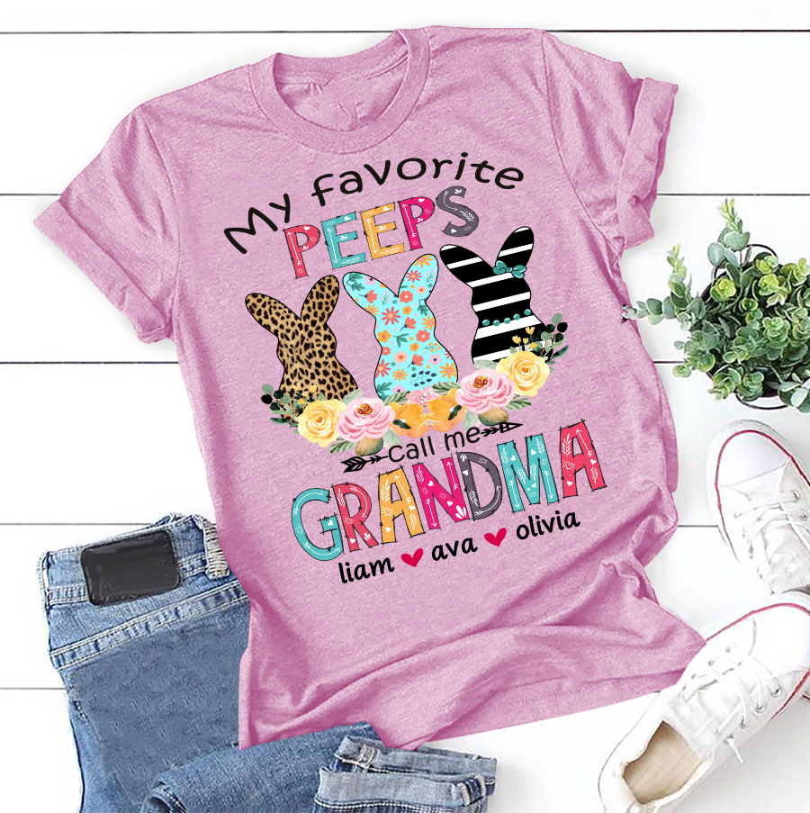 Apayprint -My Favorite Peeps Call Me Grandma,Nana, Gammie, Mimi, Gigi Life, Grandkid’s Name | Personalized T-Shirt, S – 5XL, White Grey Pink Blue Black