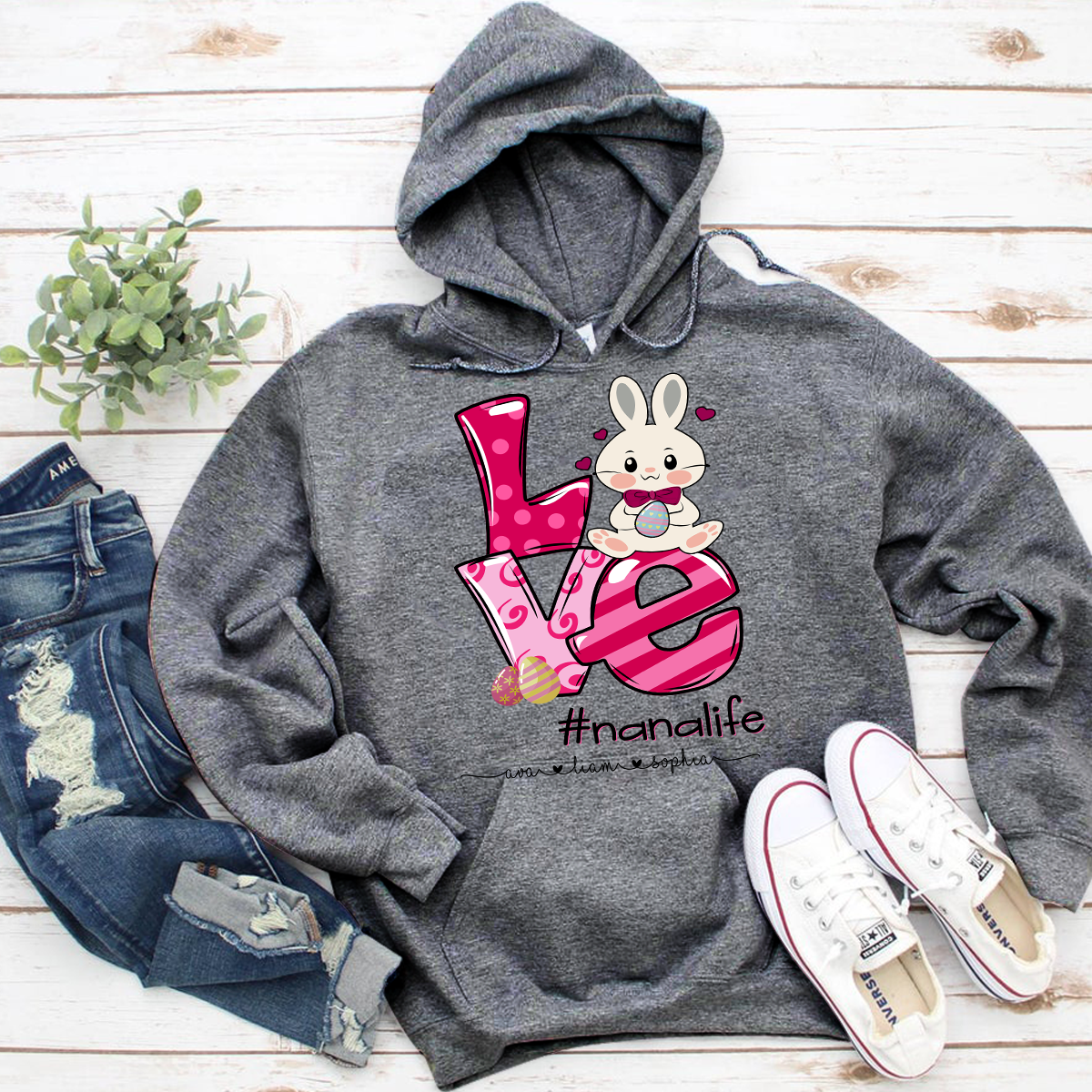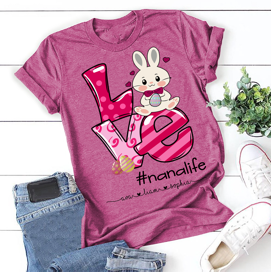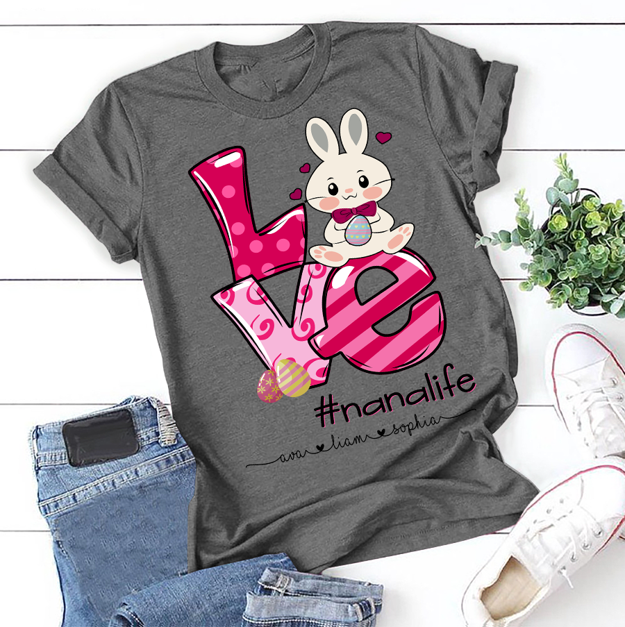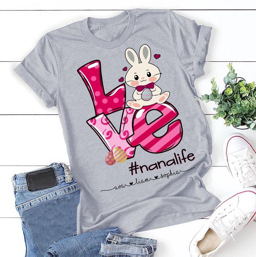 Apayprint – Nana, Grandma, Gigi Life – Easter, Grandkid’s Name | Personalized T-Shirt, S – 5XL, White Grey Pink Blue Black