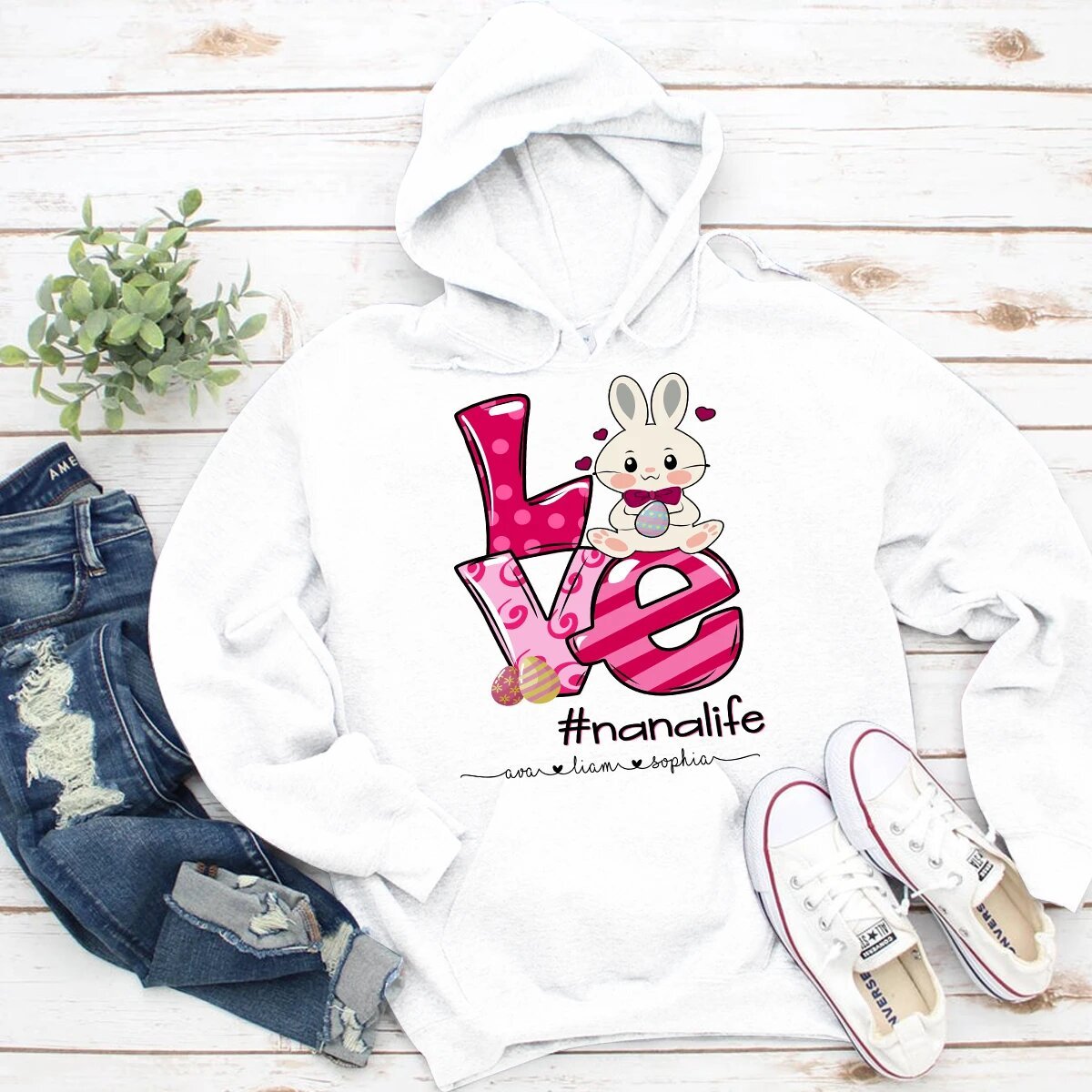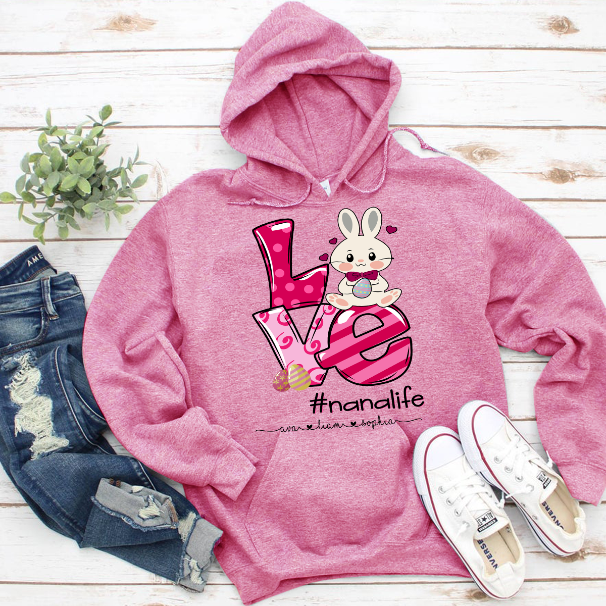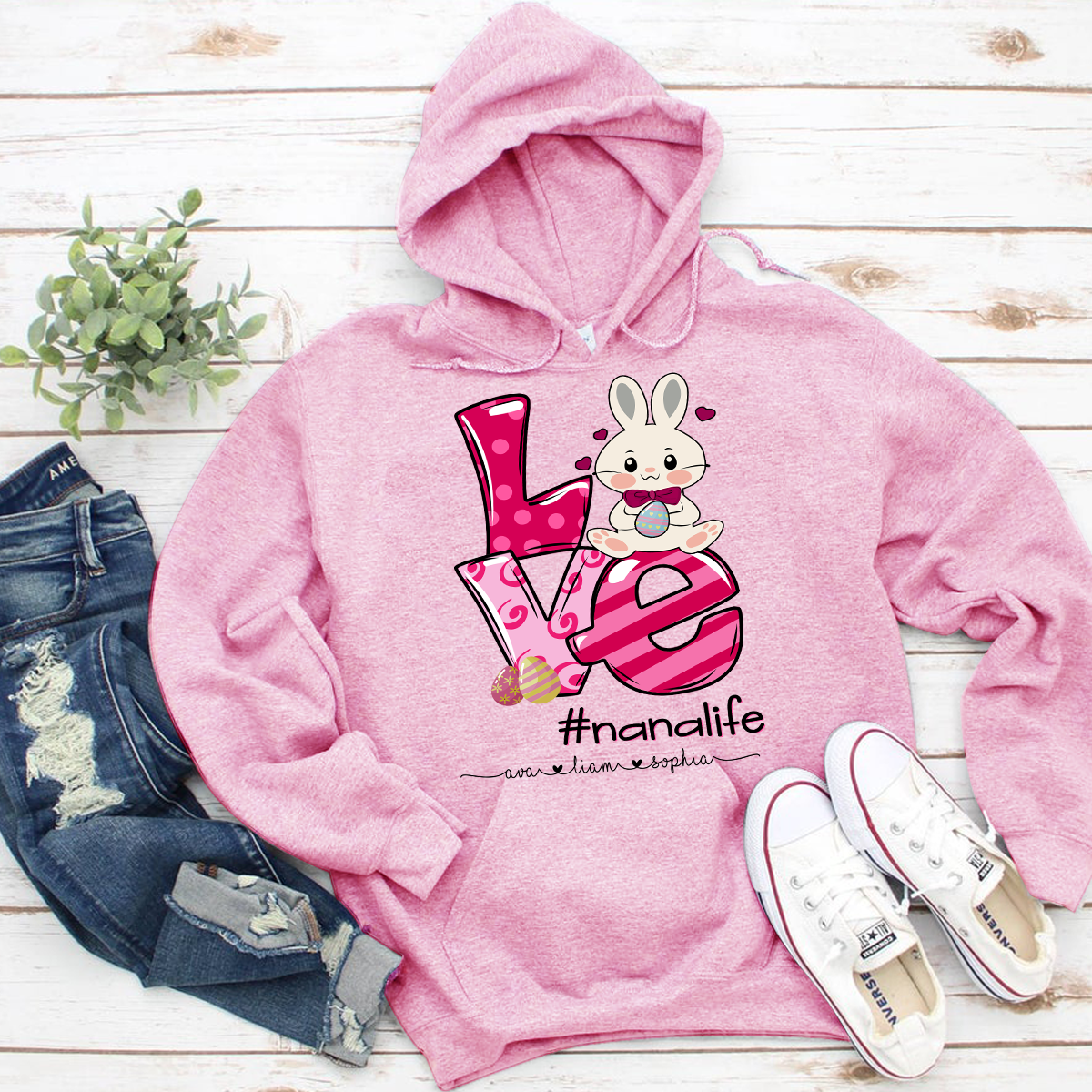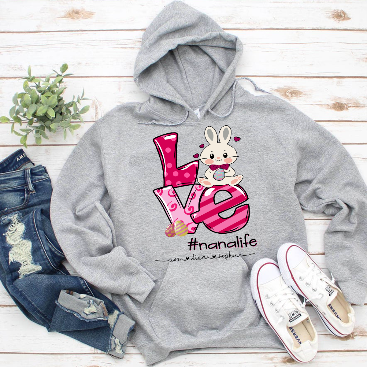 Apayprint – Nana, Grandma, Gigi Life – Easter, Grandkid’s Name | Personalized T-Shirt, S – 5XL, White Grey Pink Blue Black