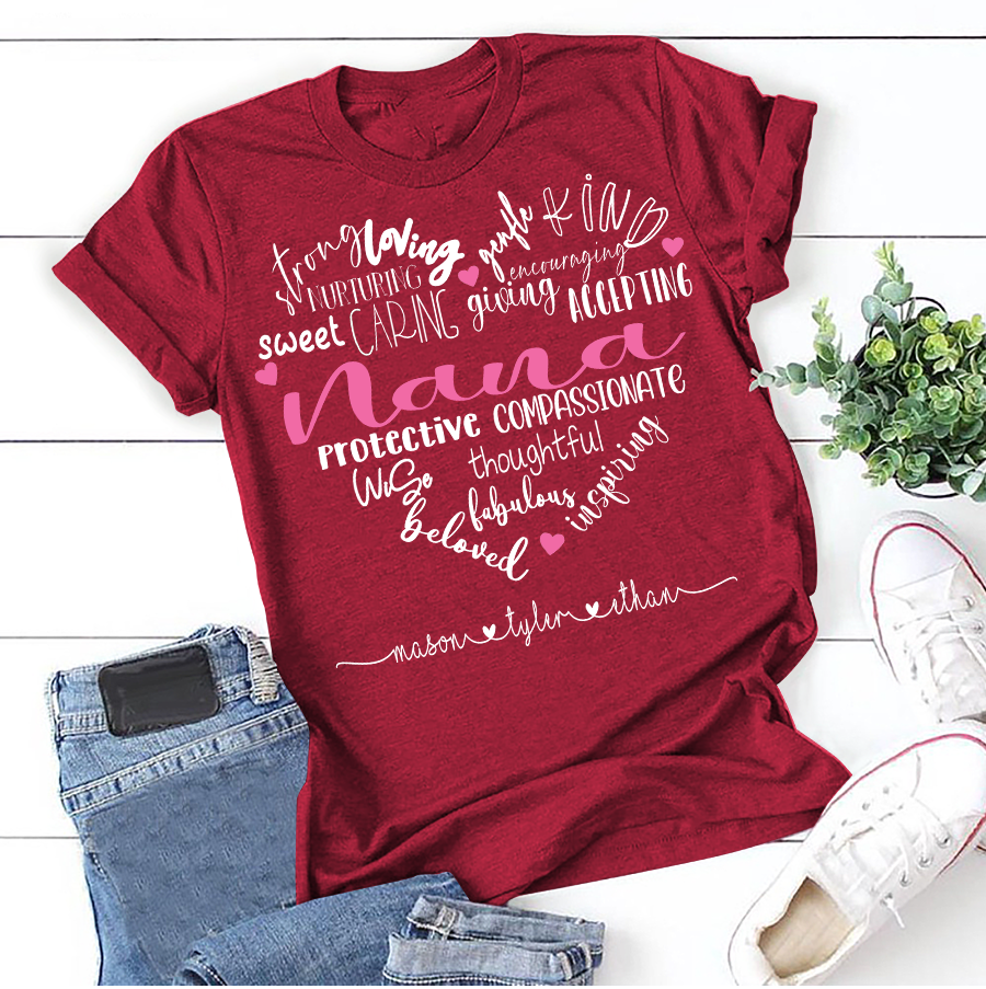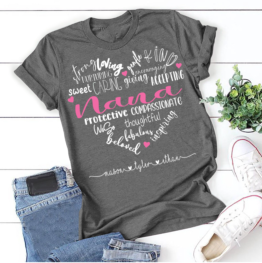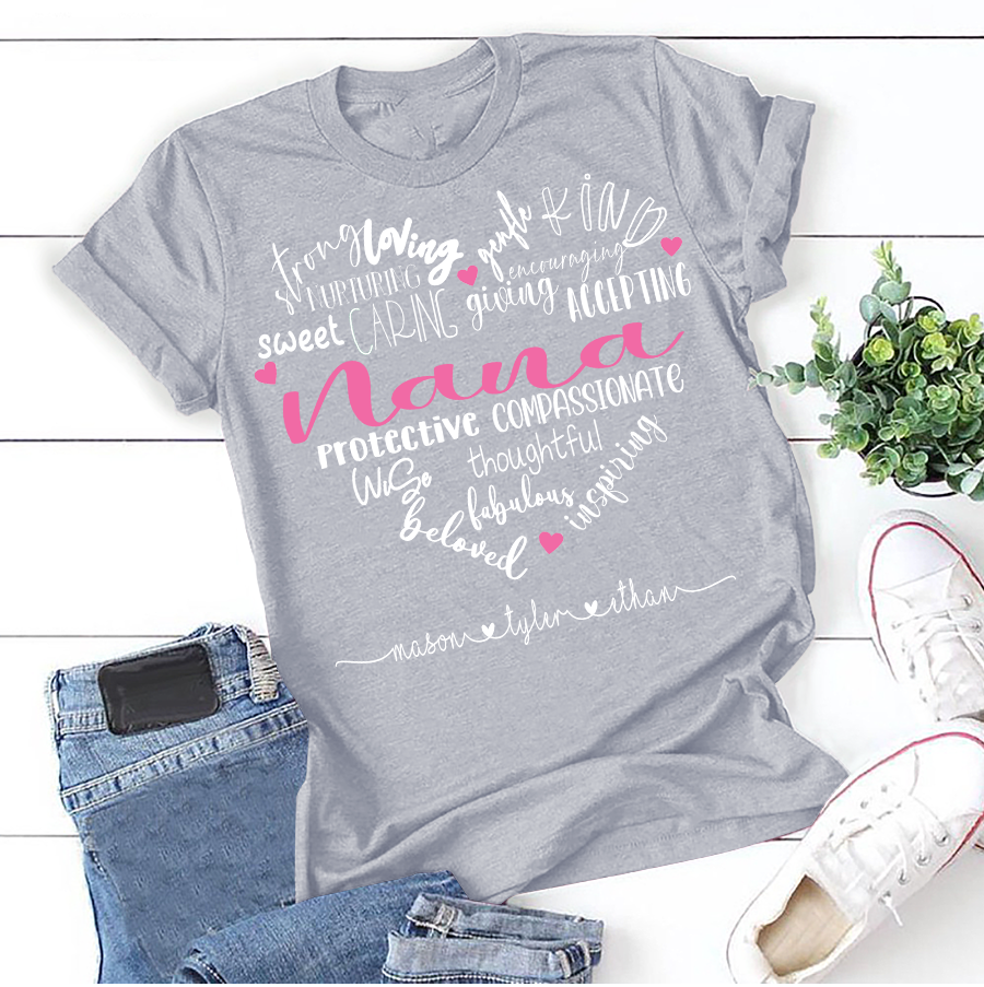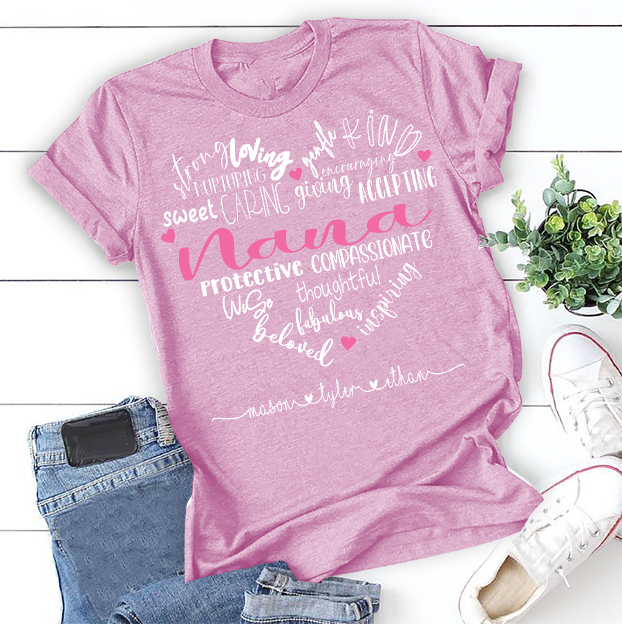 Apayprint – Nana – Heart | Personalized T-Shirt, S – 5XL, White Grey Pink Blue Black
