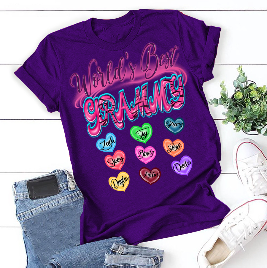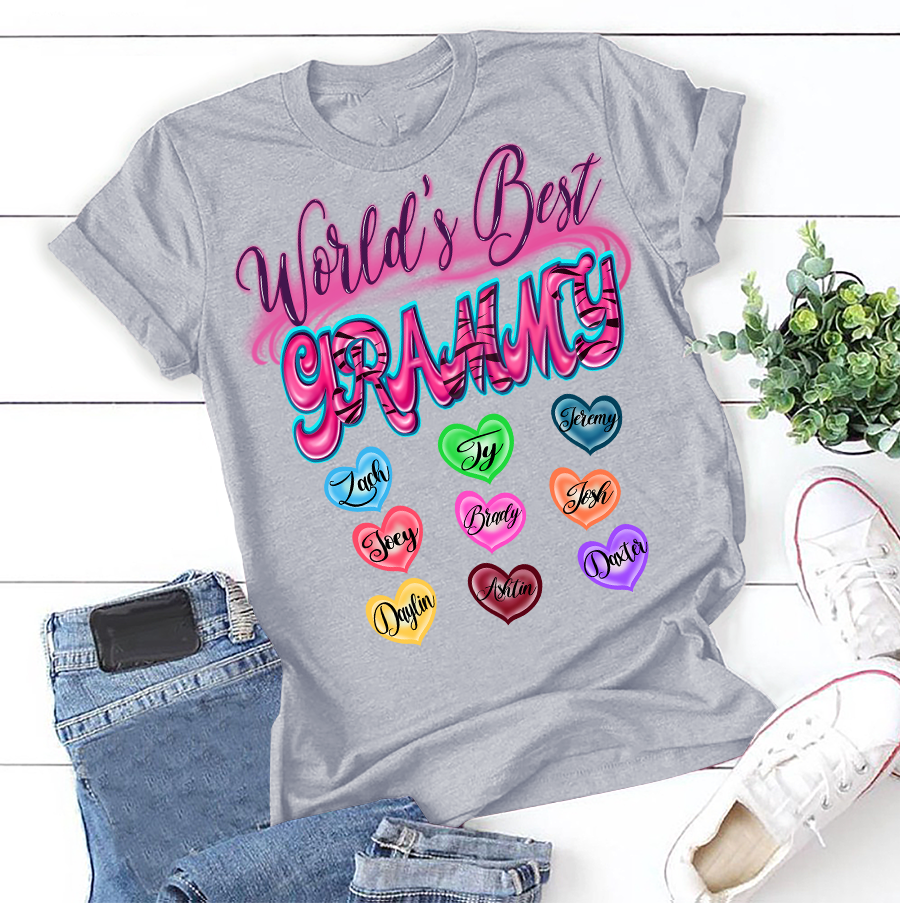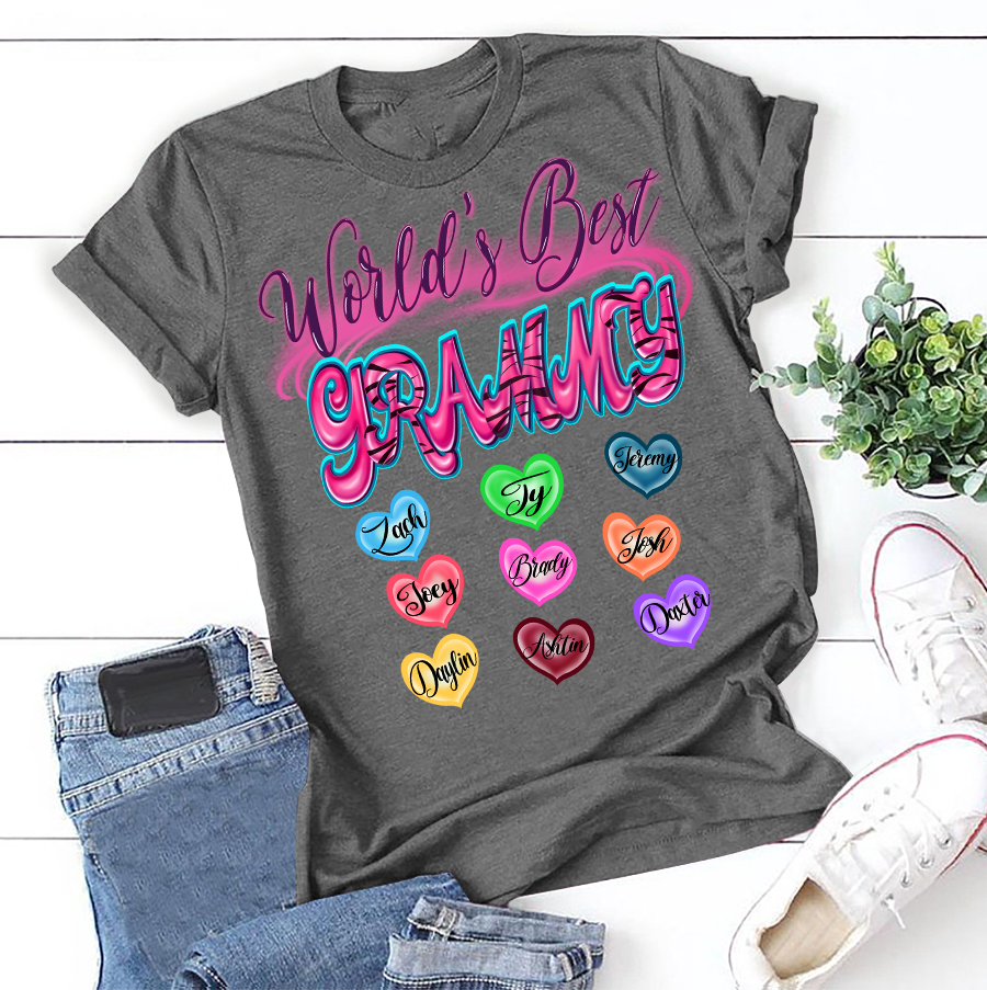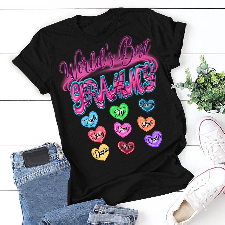 Apayprint -World’s Best Grammy – Art, Grandkid’s Name | Personalized T-Shirt, Hoodie, S – 5XL, White Grey Pink Blue Black