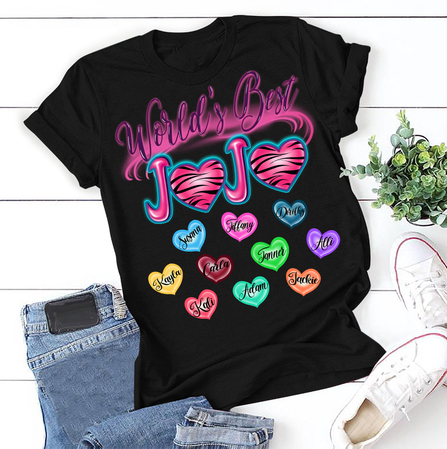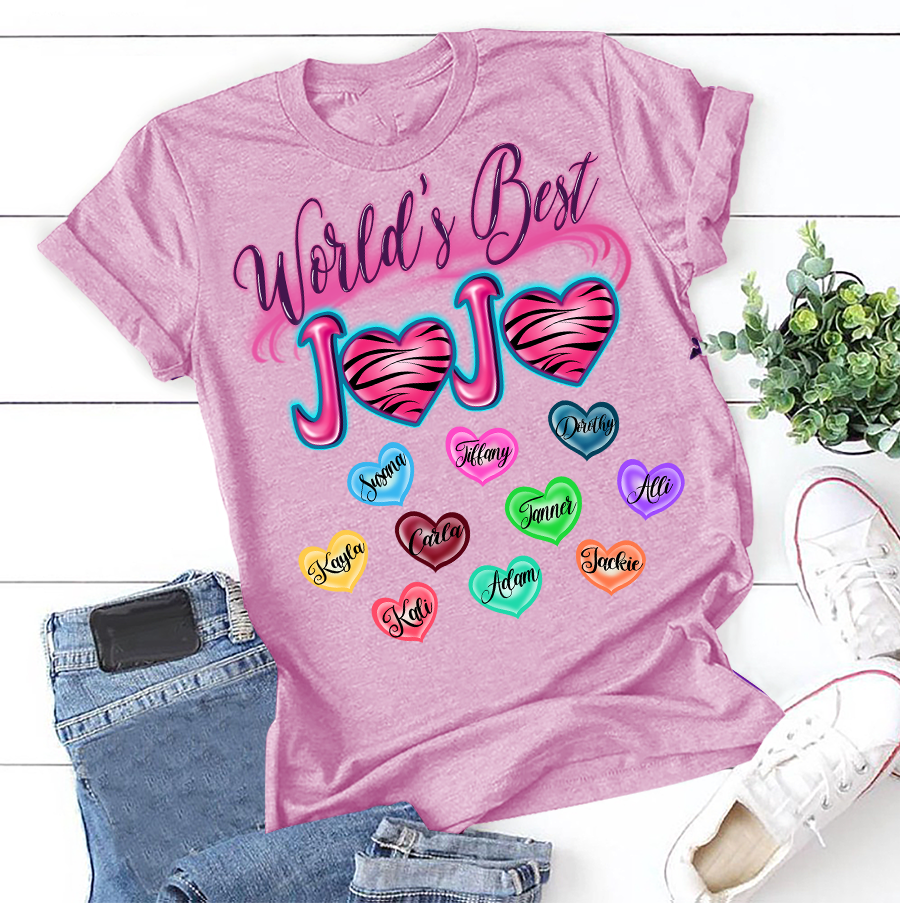 Apayprint – World’s Best Jojo – Art| Personalized T-Shirt, S – 5XL, White Grey Pink Blue Black