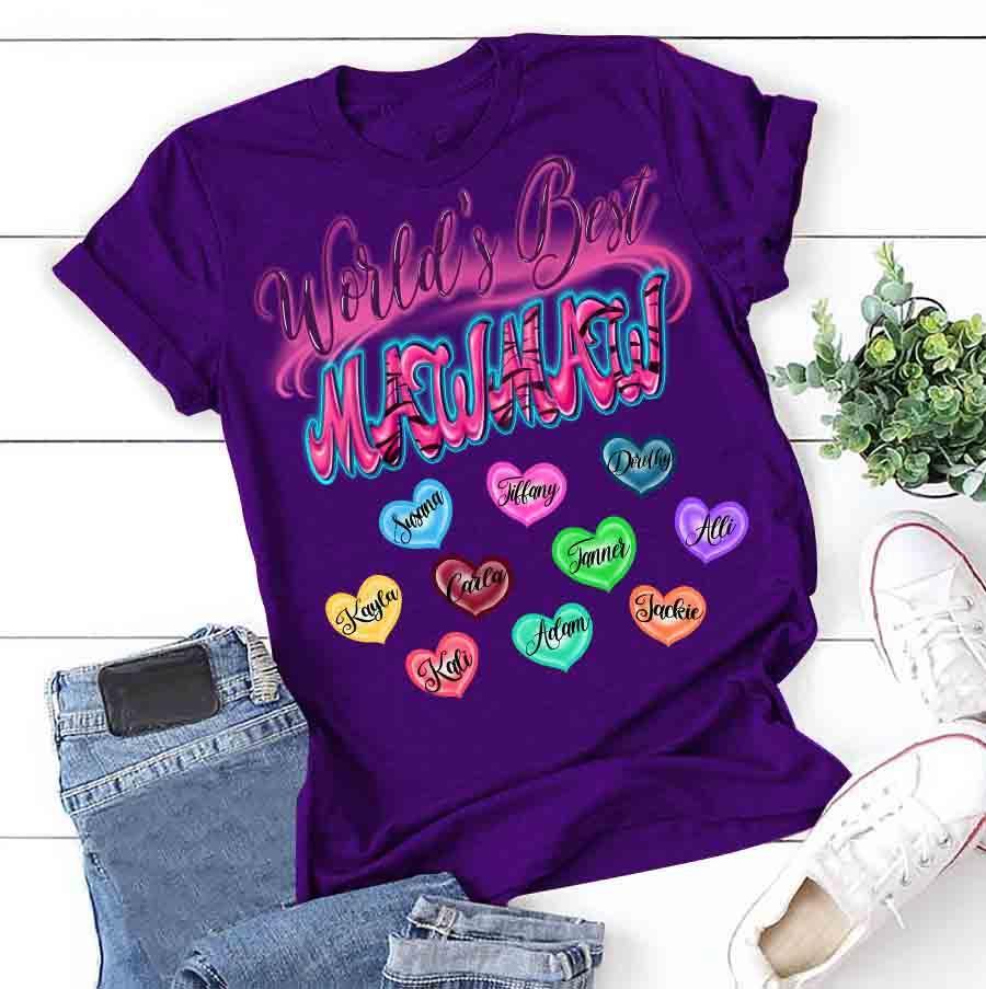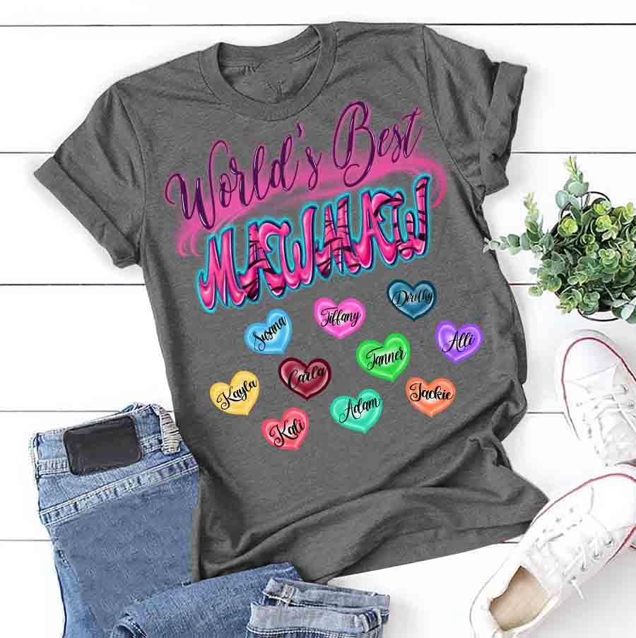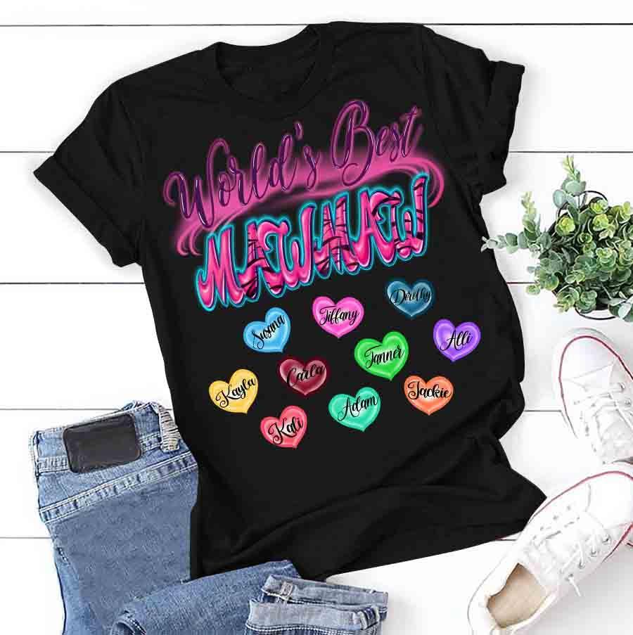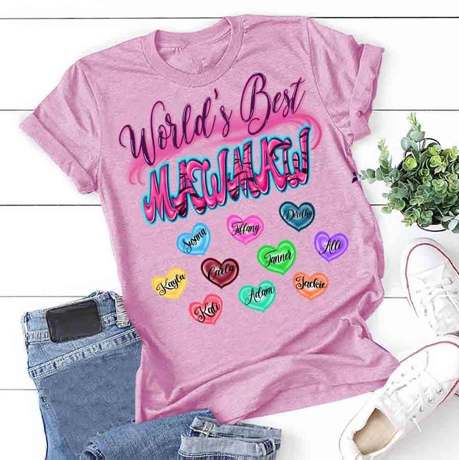 Apayprint – World’s Best Mawmaw – Art| Personalized T-Shirt, S – 5XL, White Grey Pink Blue Black