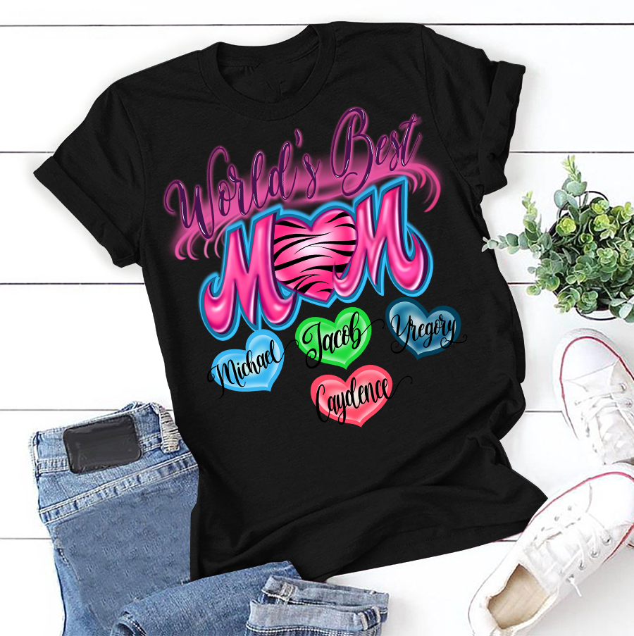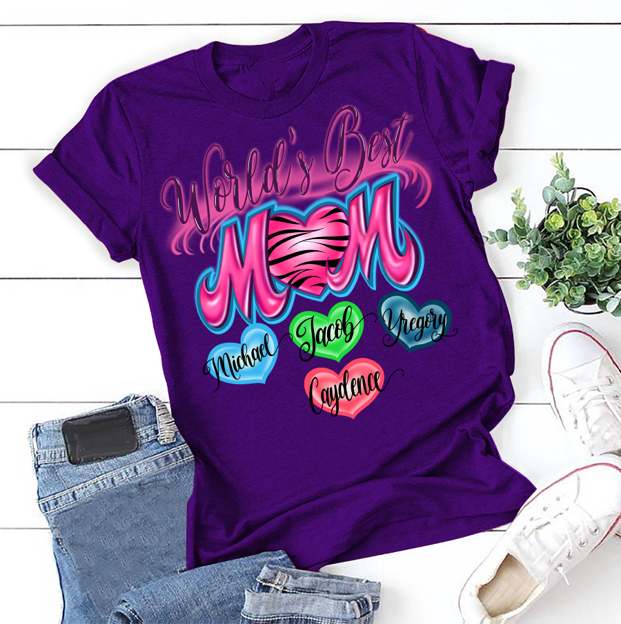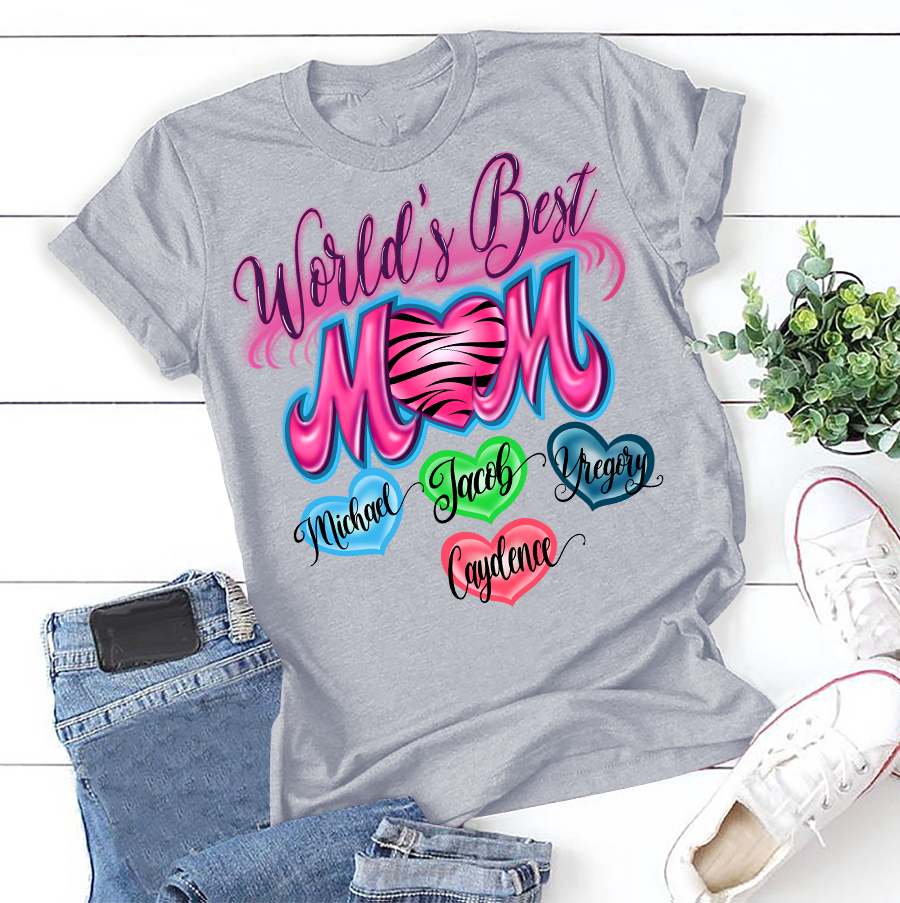 Apayprint – World’s Best Mom | Personalized T-Shirt, S – 5XL, White Grey Pink Blue Black