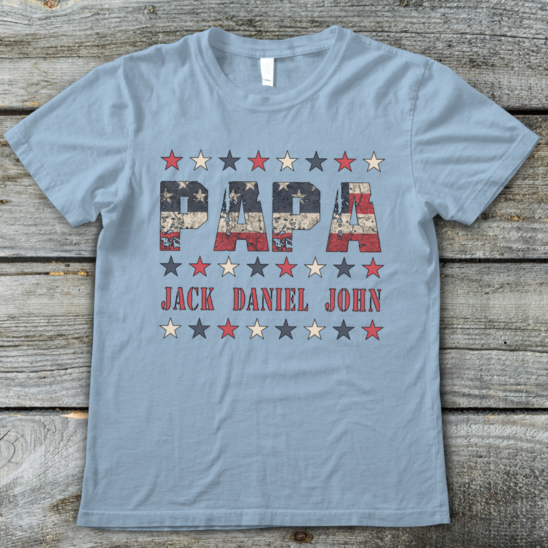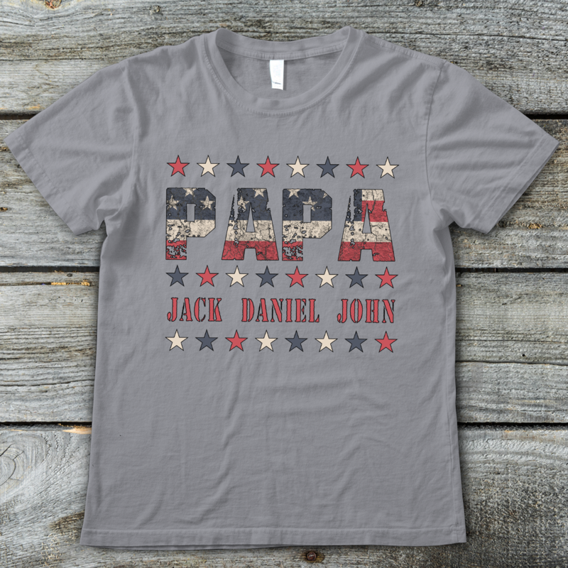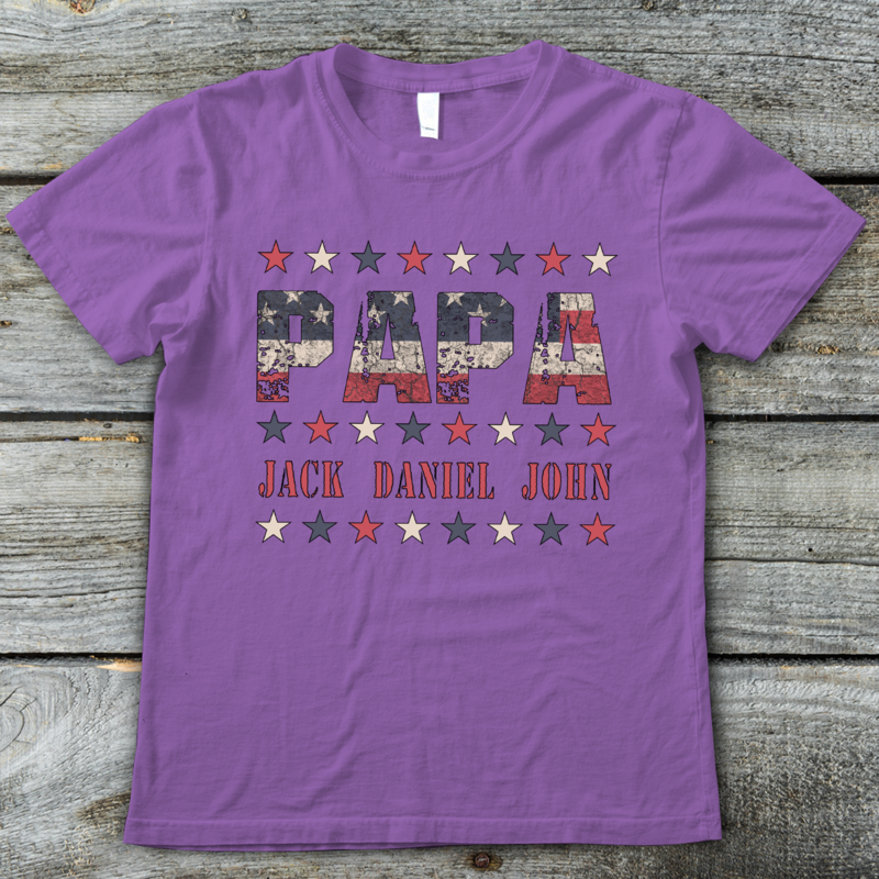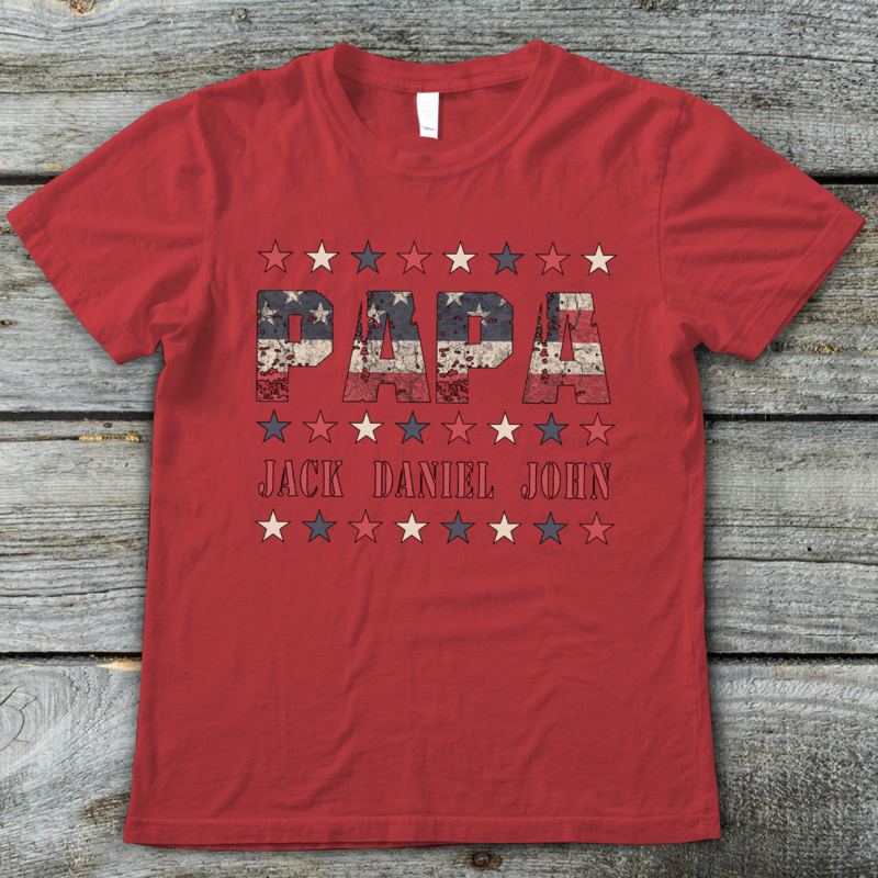 Apayprints – Papa With Grandkids Name Personalized T-Shirt, S – 5XL, White Grey Pink Blue Black