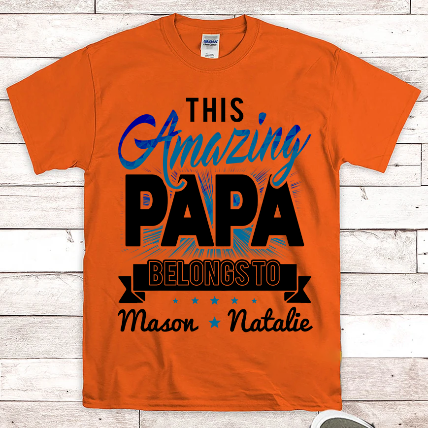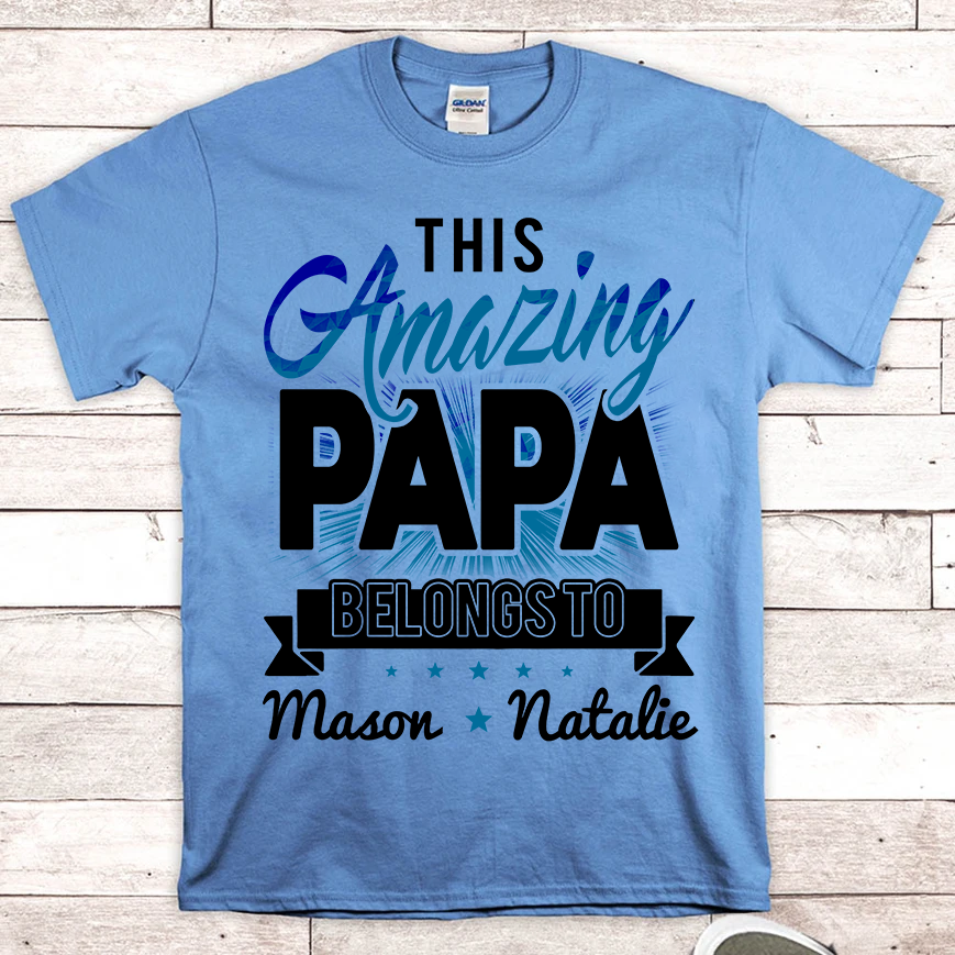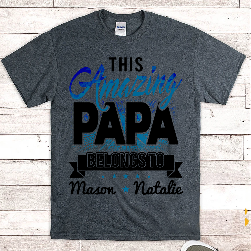 Apayprints – This Amazing Papa Belongs To | Personalized T-Shirt, S – 5XL, White Grey Pink Blue Black