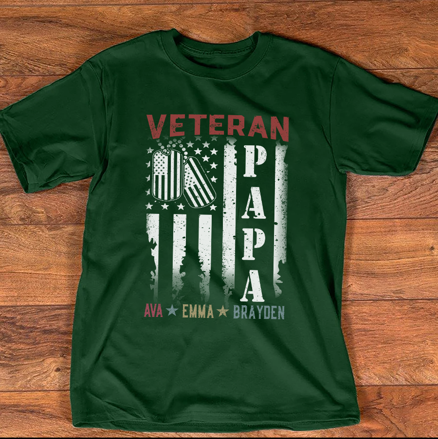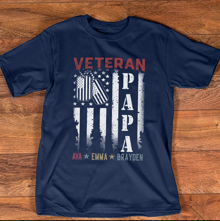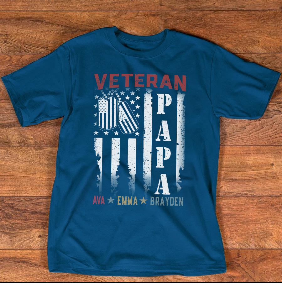 Apayprints – Veteran Papa Personalized T-Shirt, S – 5XL, White Grey Pink Blue Black