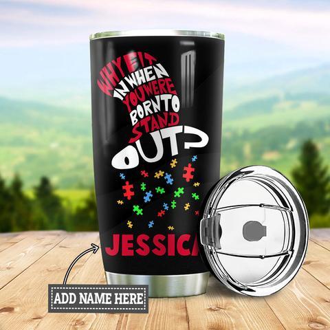Autism Born Stand Out Personalized Kd2 Stainless Steel Tumbler, Personalized Tumblers, Tumbler Cups, Custom Tumblers