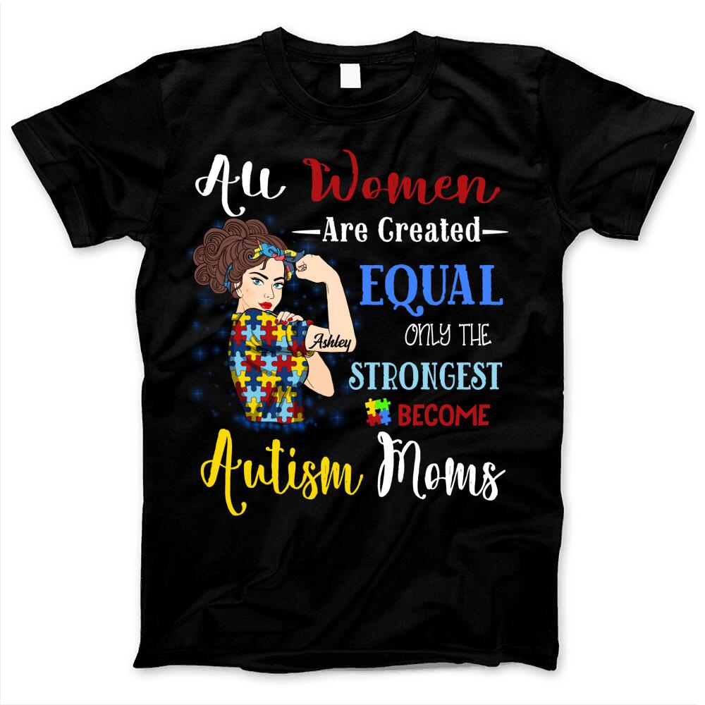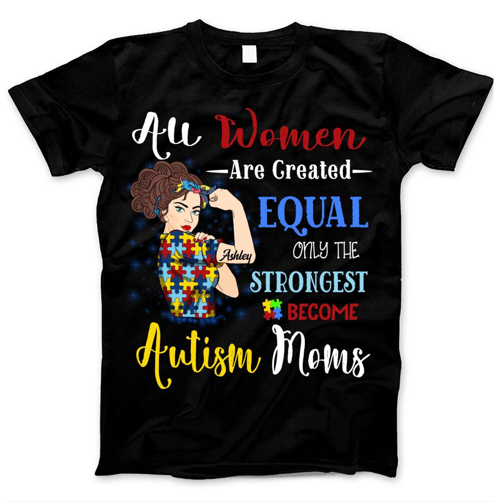 Autism Mom Strongest Woman Mental Health Awareness Puzzle Piece Custom Style & Name Personalized T-shirt