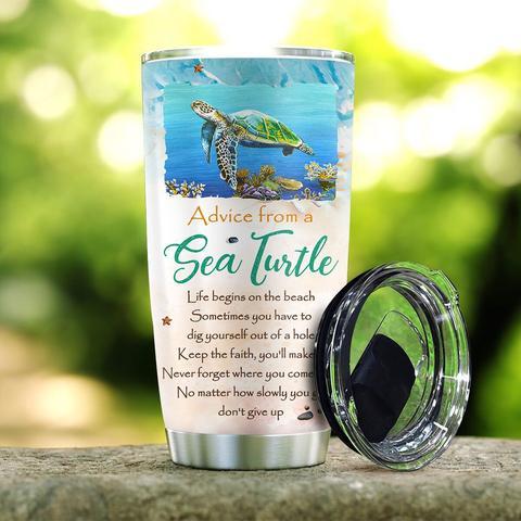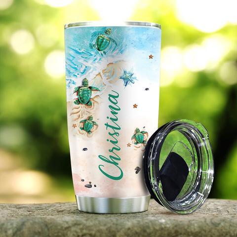 Baby Sea Turtle Advice Beach Personalized Kd2 Stainless Steel Tumbler, Personalized Tumblers, Tumbler Cups, Custom Tumblers