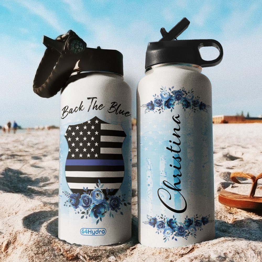 Back The Blue Personalized Mda2909028 Stainless Steel Bottle With Straw Lid