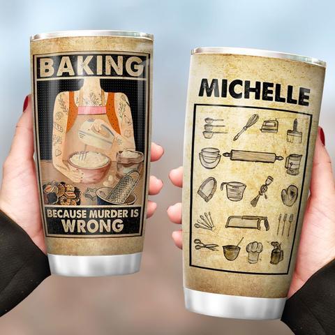 Baking Murder Is Wrong Personalized Stainless Steel Tumbler, Personalized Tumblers, Tumbler Cups, Custom Tumblers