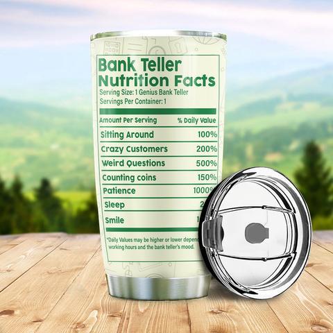 Bank Teller Nutrition Facts Personalized Stainless Steel Tumbler, Personalized Tumblers, Tumbler Cups, Custom Tumblers