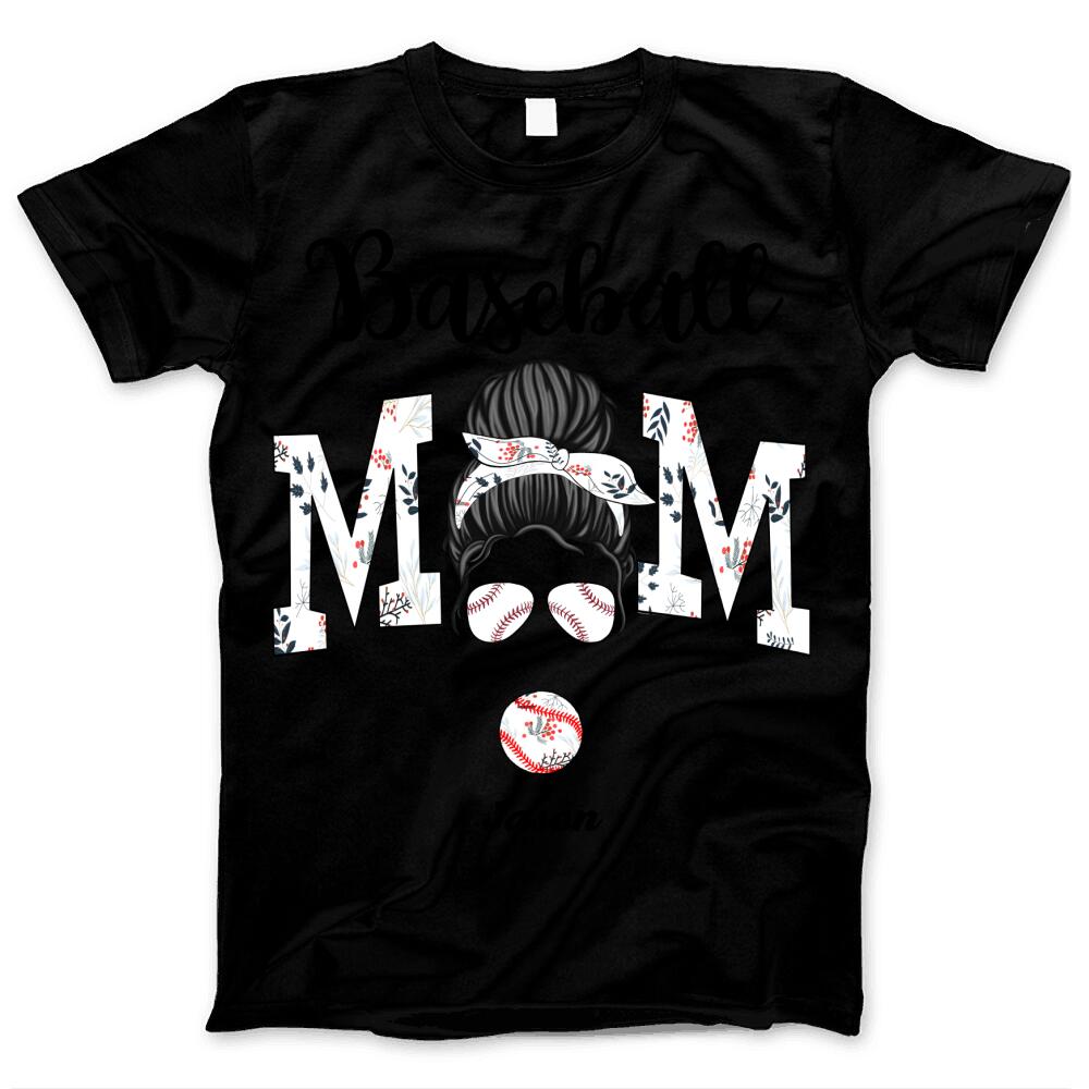 Baseball Mom Sport Flower Floral Pattern Custom Hair & Kid’s Name Personalized T-shirt Mother’s Day Gift For Mom