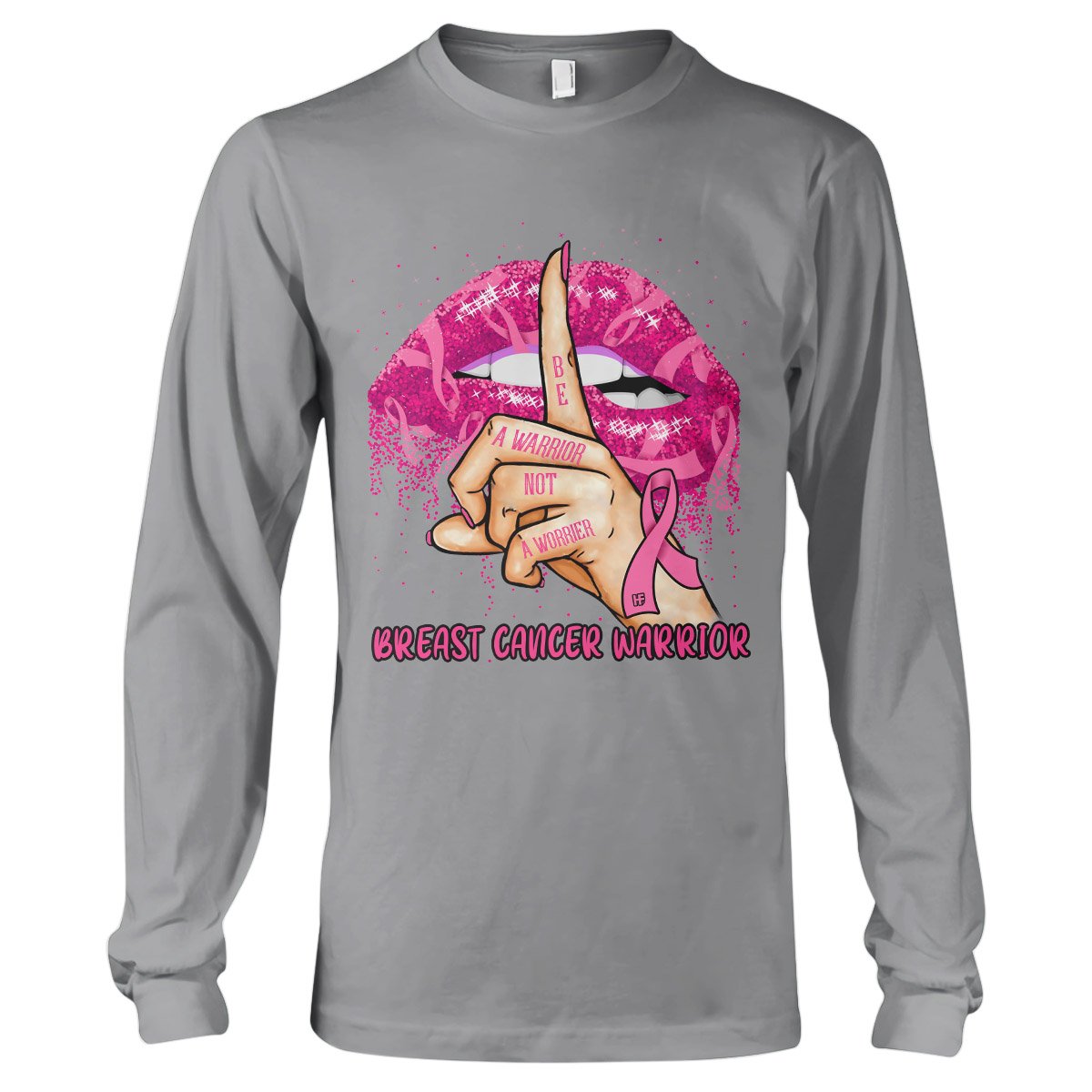 Be A Warrior Not A Worrier Breast Cancer Awareness Shirt, Breast Cancer Awareness Month Long Sleeve T-Shirt