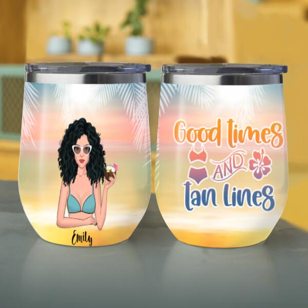 Beach Girl Good Times & Tan Lines Gift Ideas Awesome Summer Trip Custom Style & Name Personalized Wine Tumbler