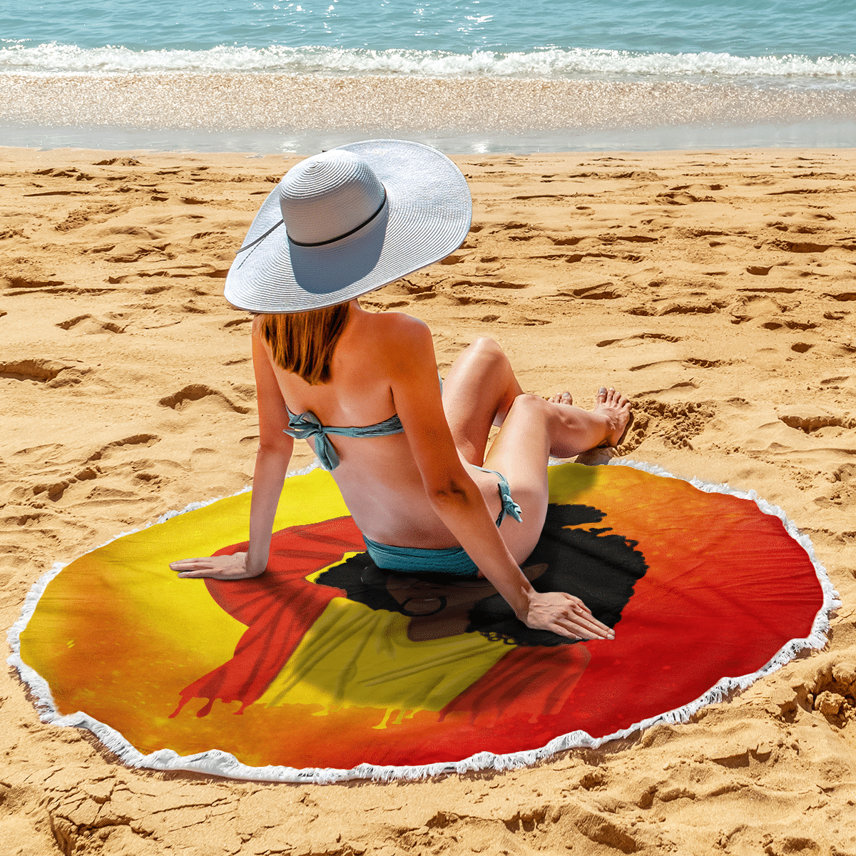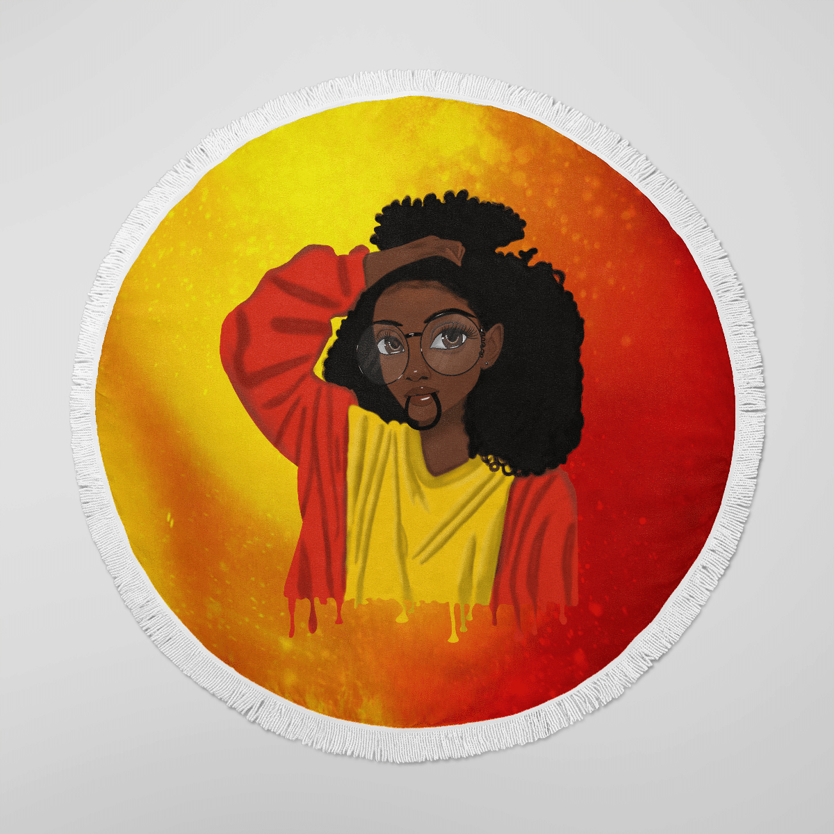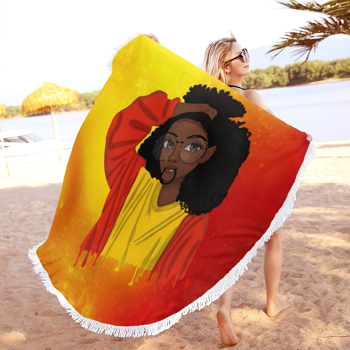 Beach Towel African Woman All Over Print Cute Black Girl Curly Hairstyle Beach Towel