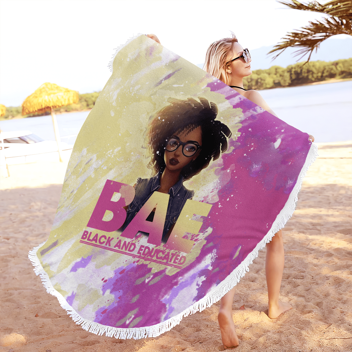 Beach Towel All Over Print Black Girls Afro Black And Educated Bae Beach Towel