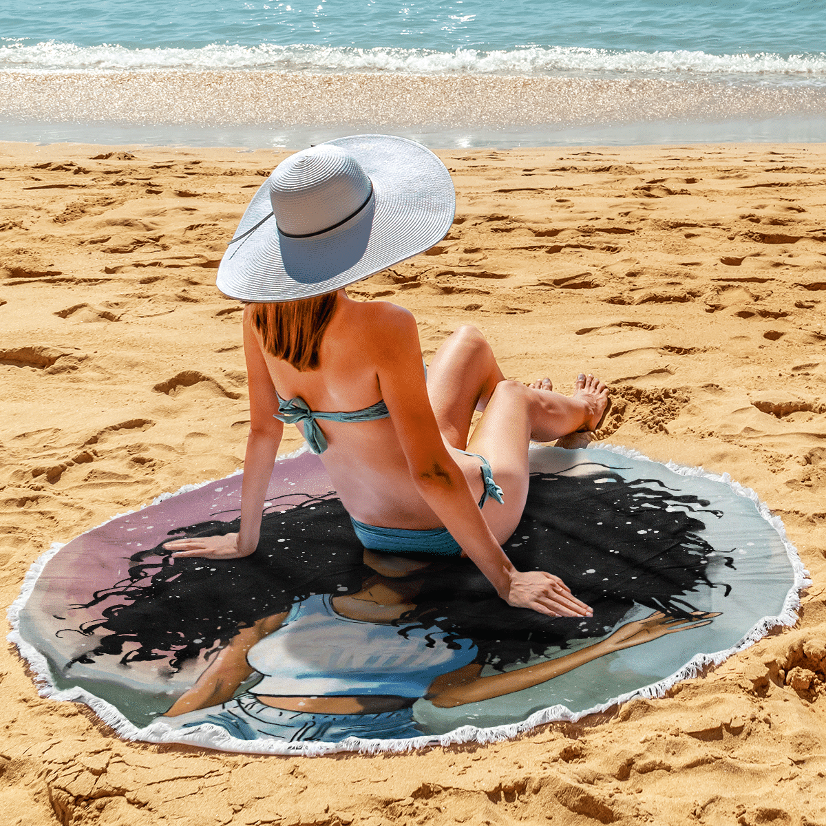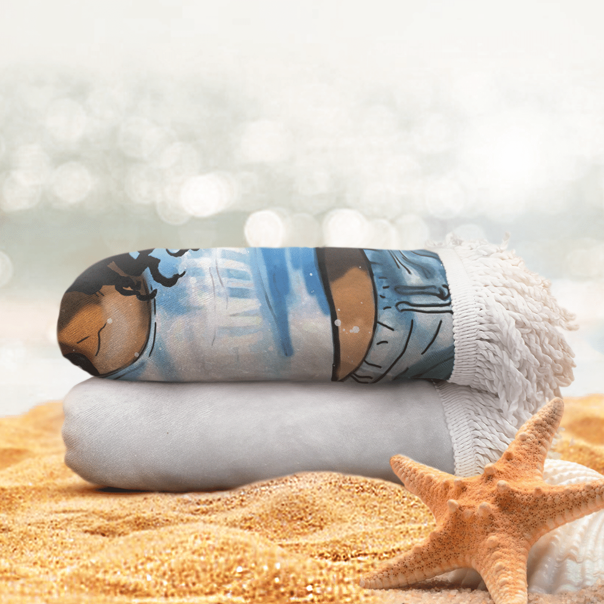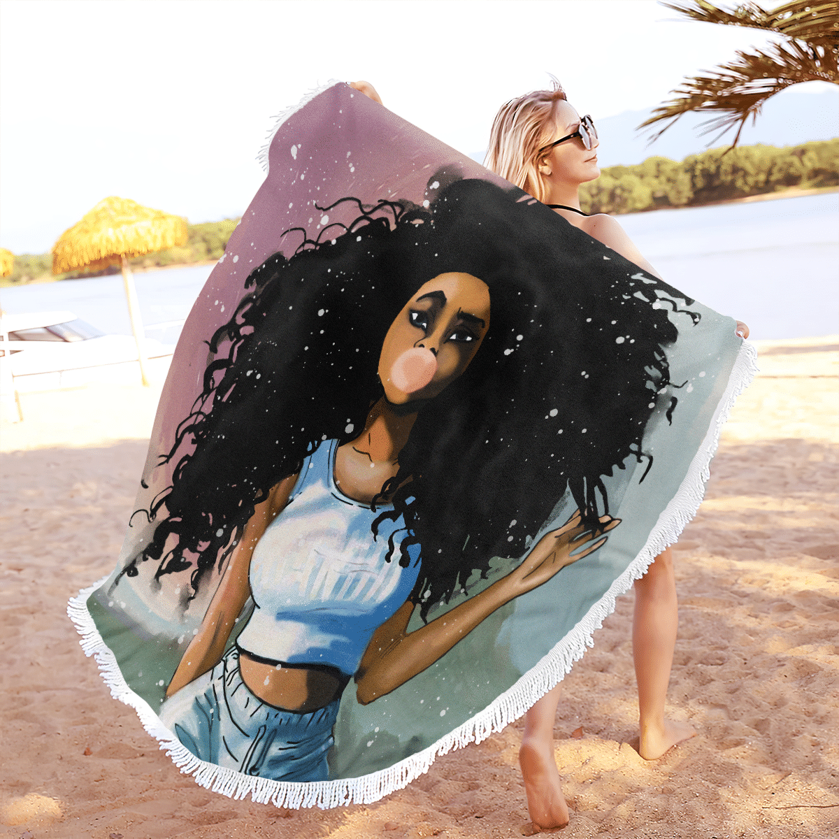 Beach Towel Black Girl Curly Art All Over Print Beach Towel For Bubble Girl