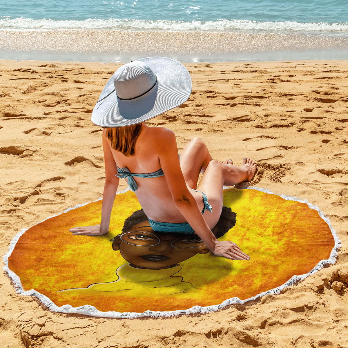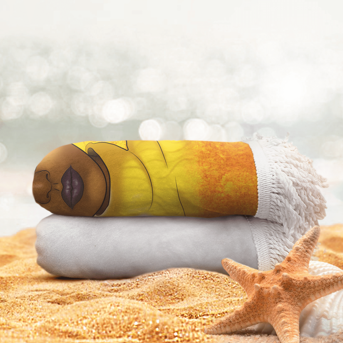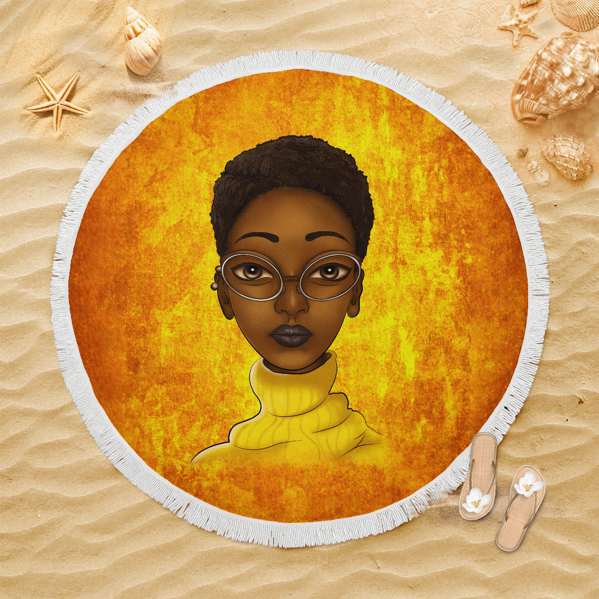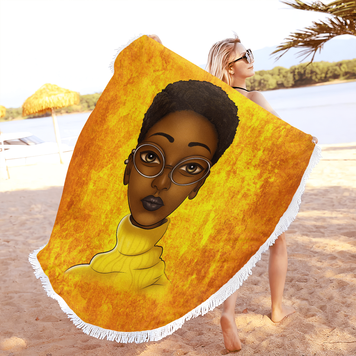 Beach Towel Black Girl Short Hair Art All Over Print For Woman Educated Beach Towel